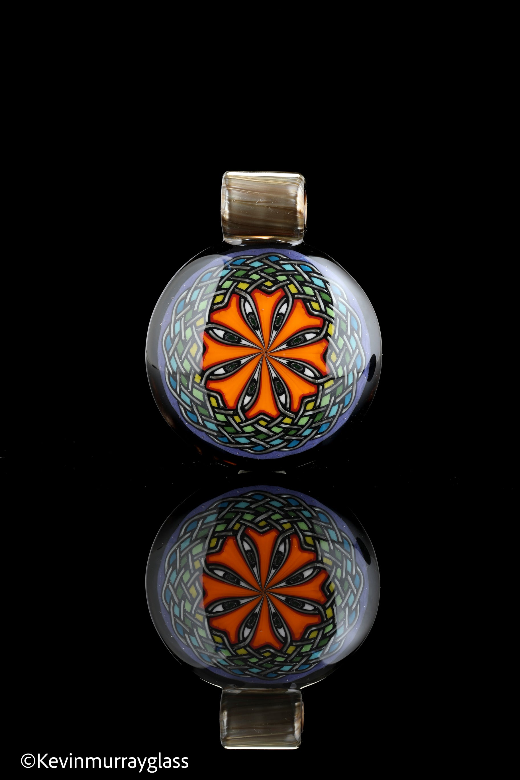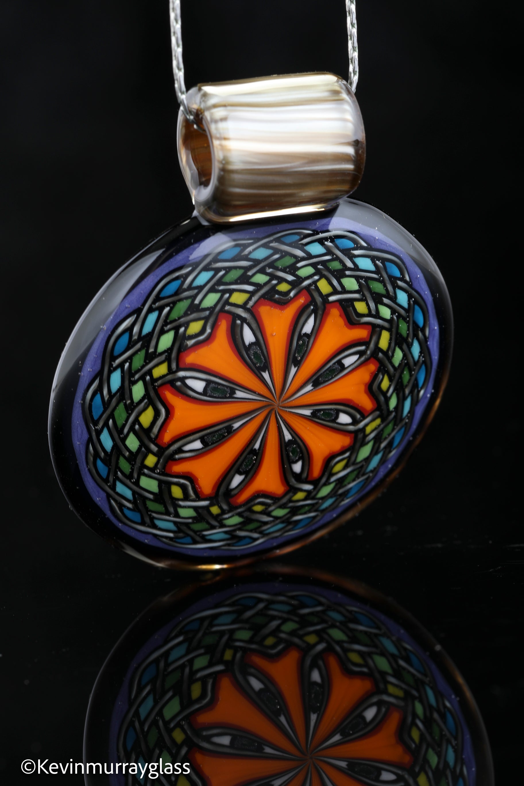 Hand drawn celtic knot pendant with electrum knots, marbled electrum back and bail, and UV reactive eyes. TI signed. Chain not included.