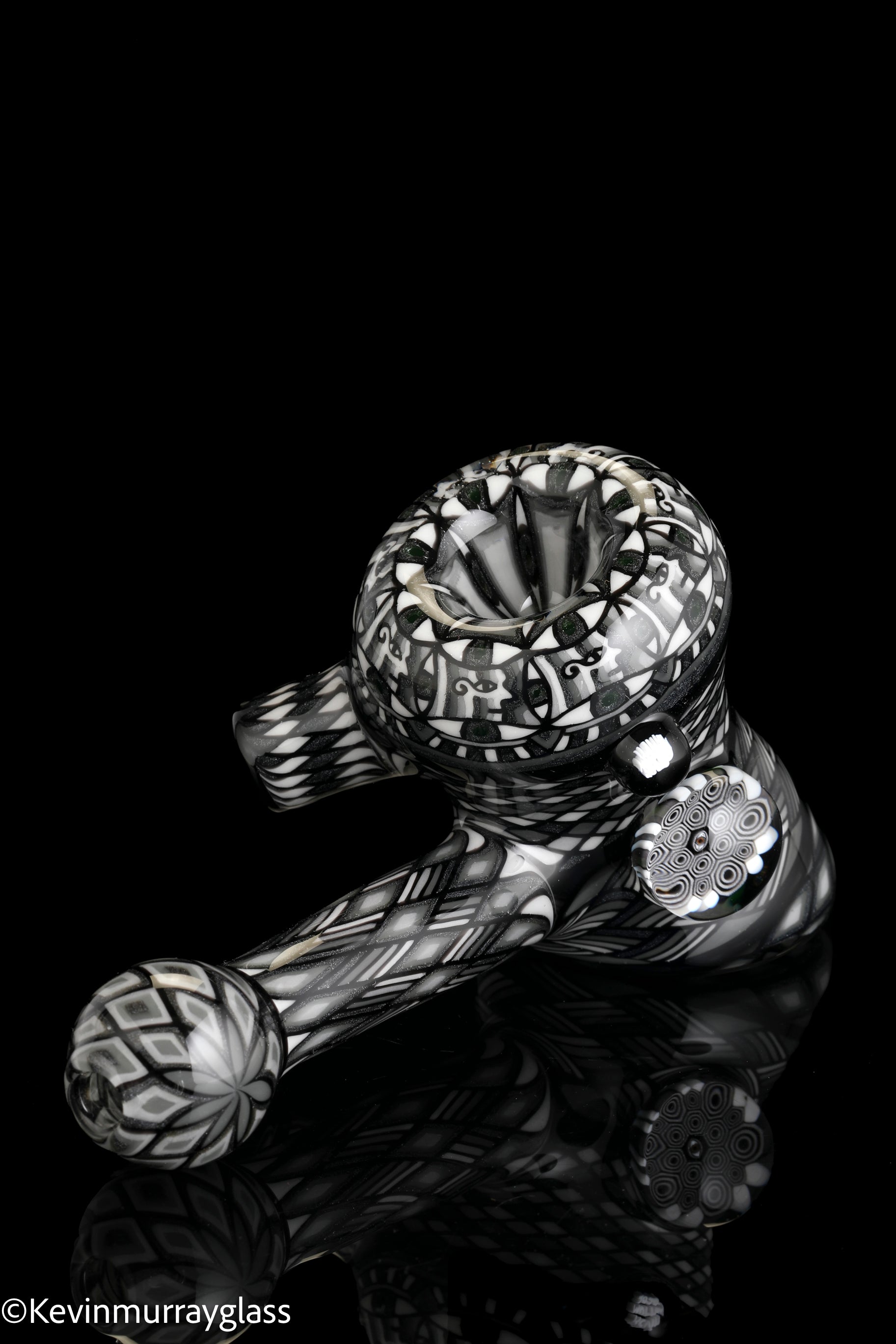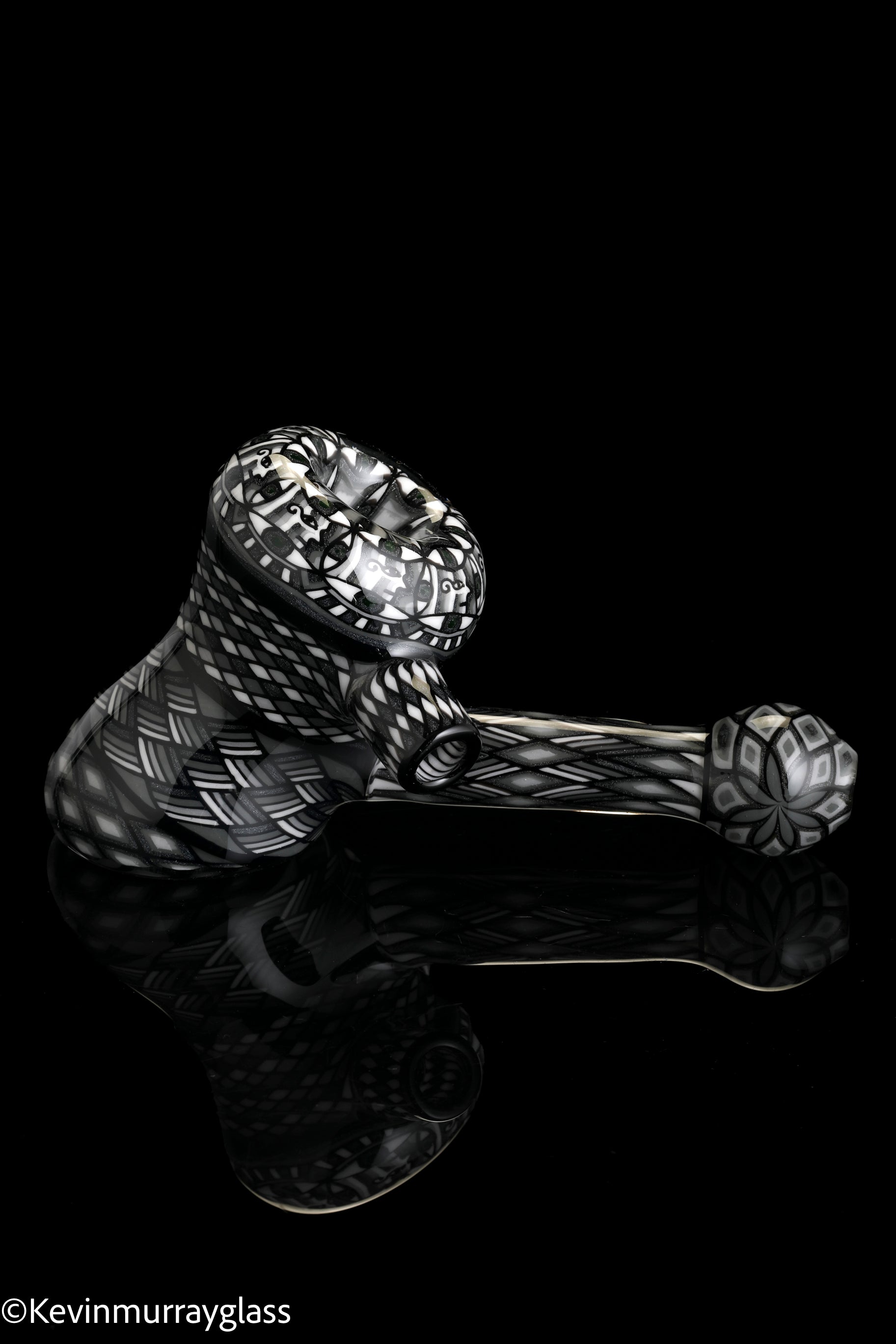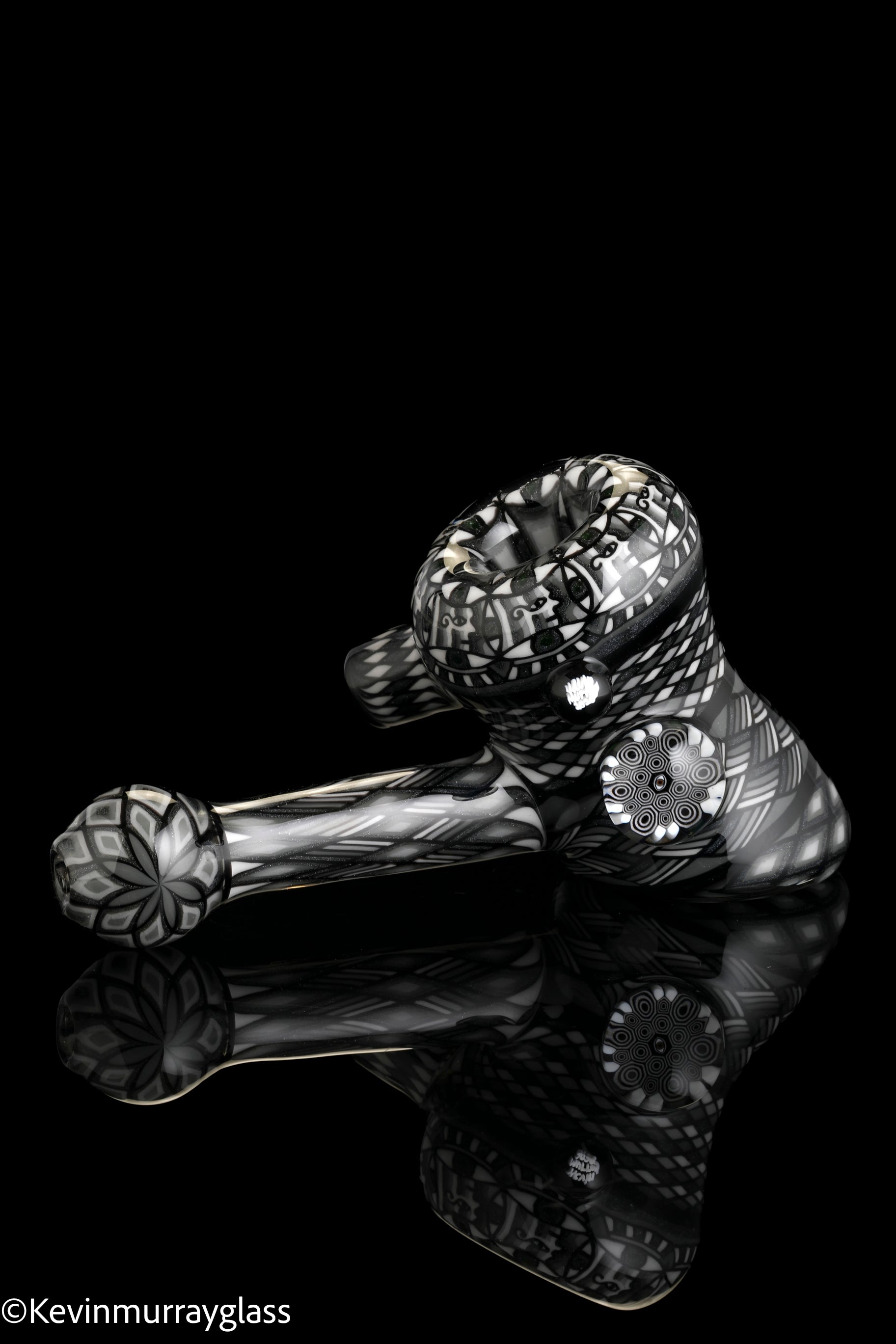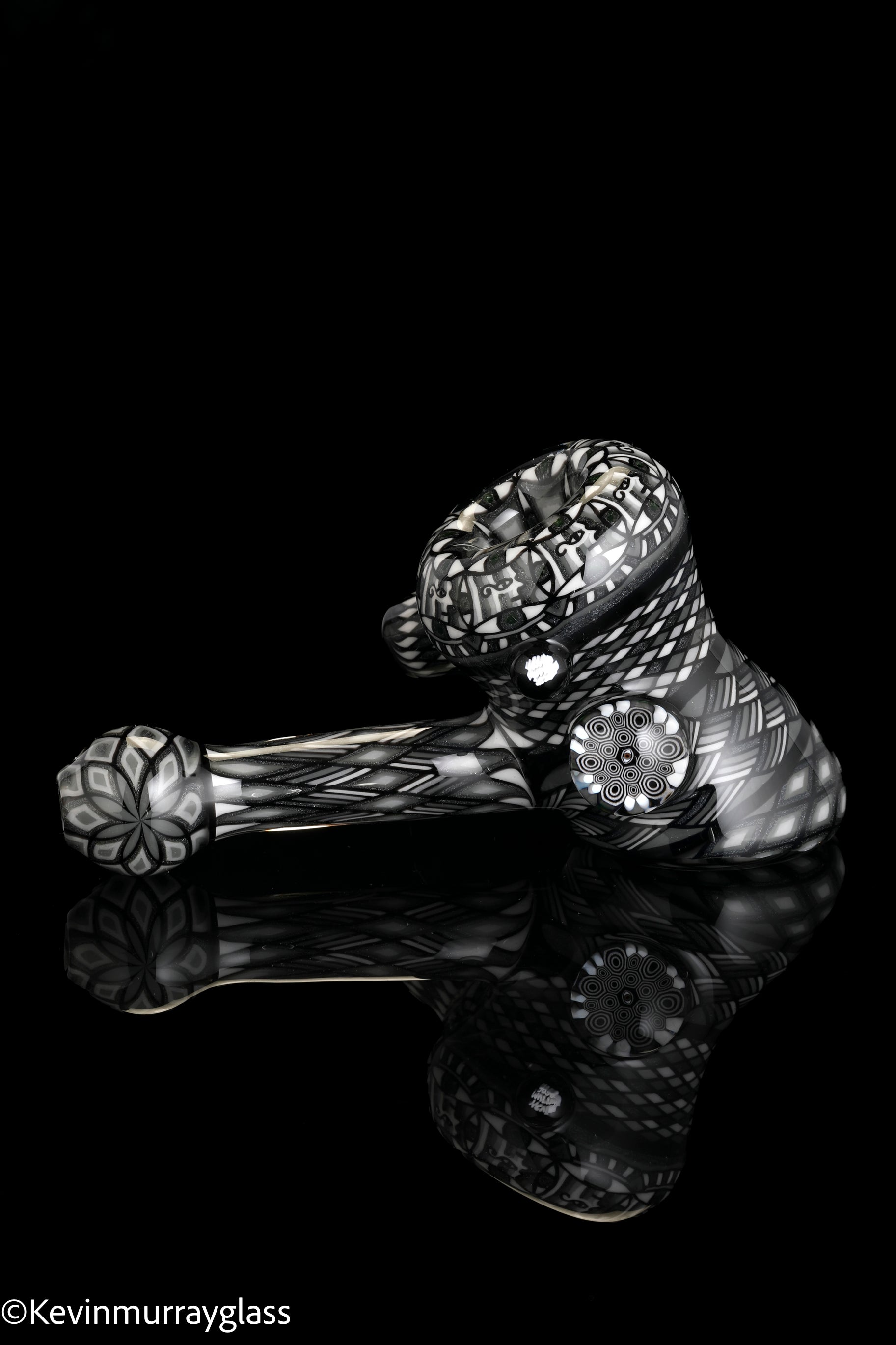 Fully worked Grayscale hammer dry pipe. Seven meticulously hand drawn and flipped fillacello sections for every inch of the piece. Signed with the signature/year murrine.