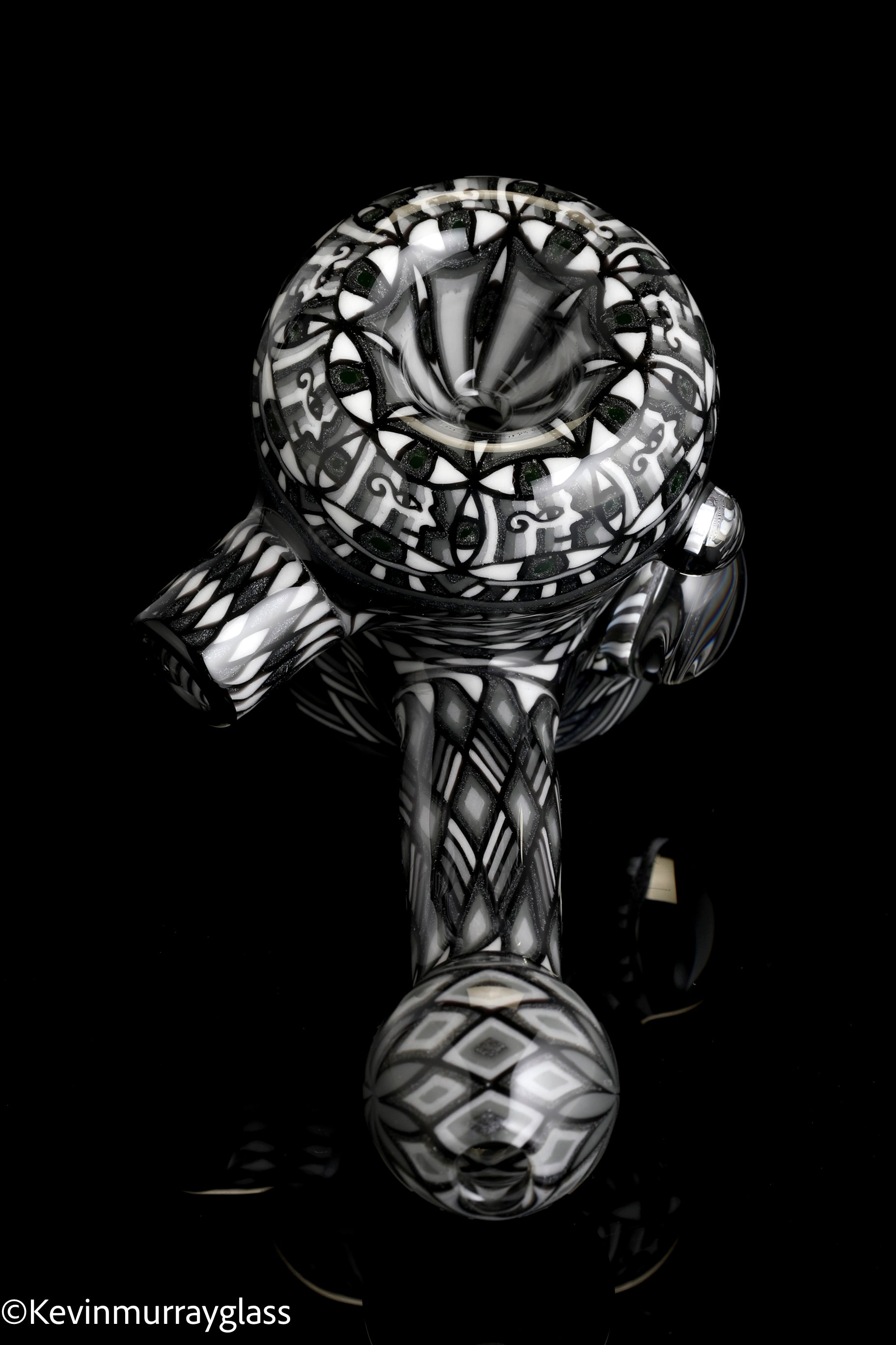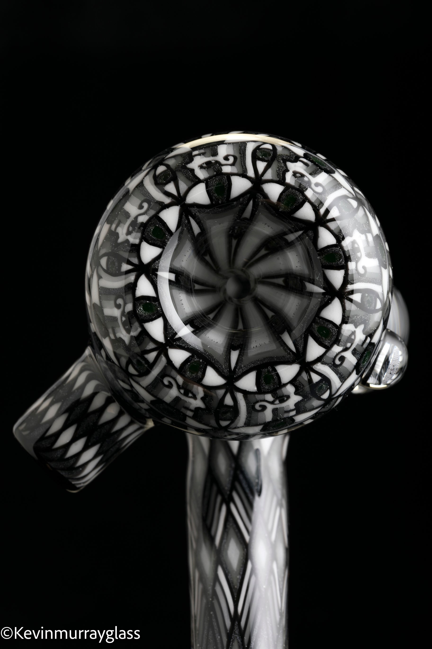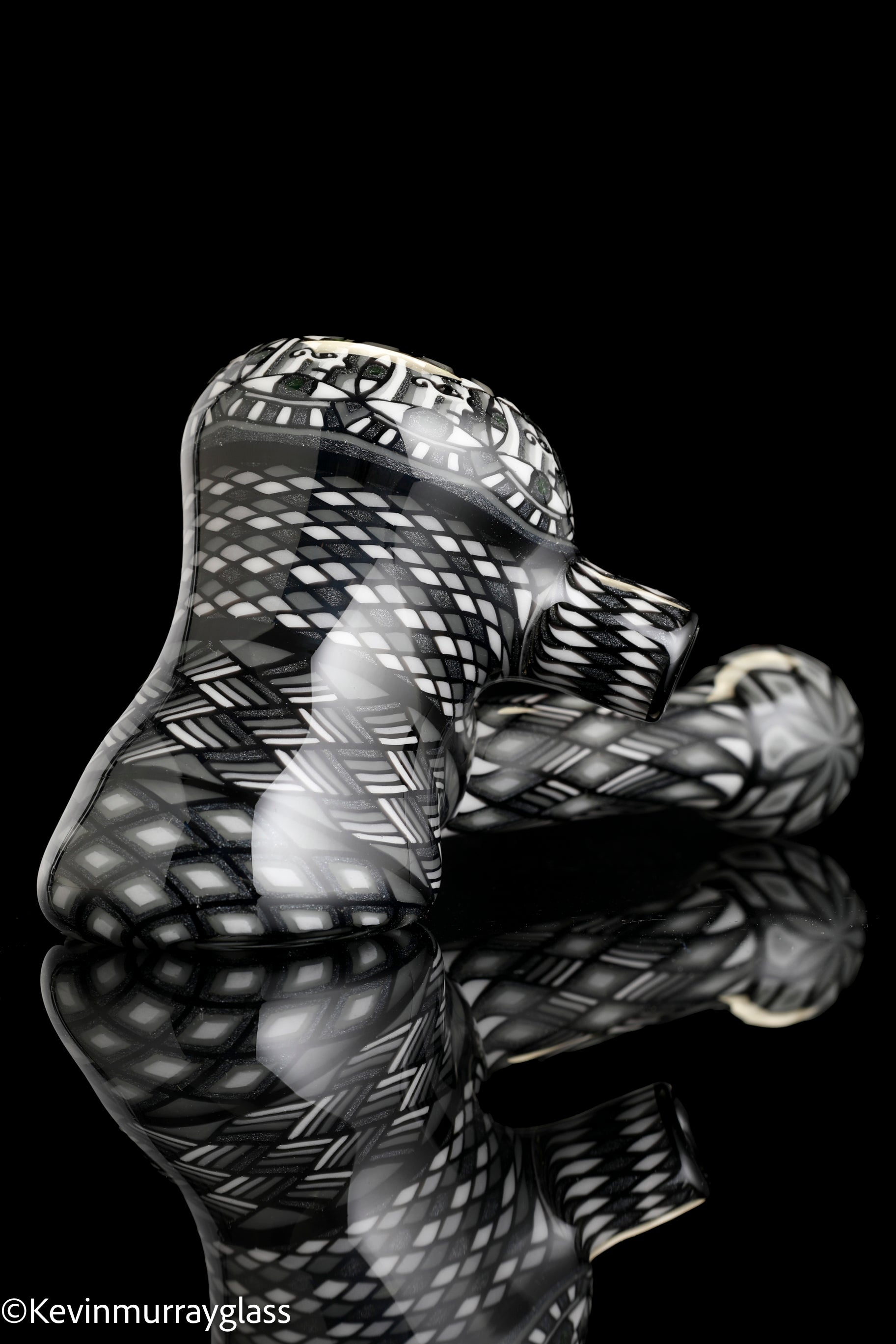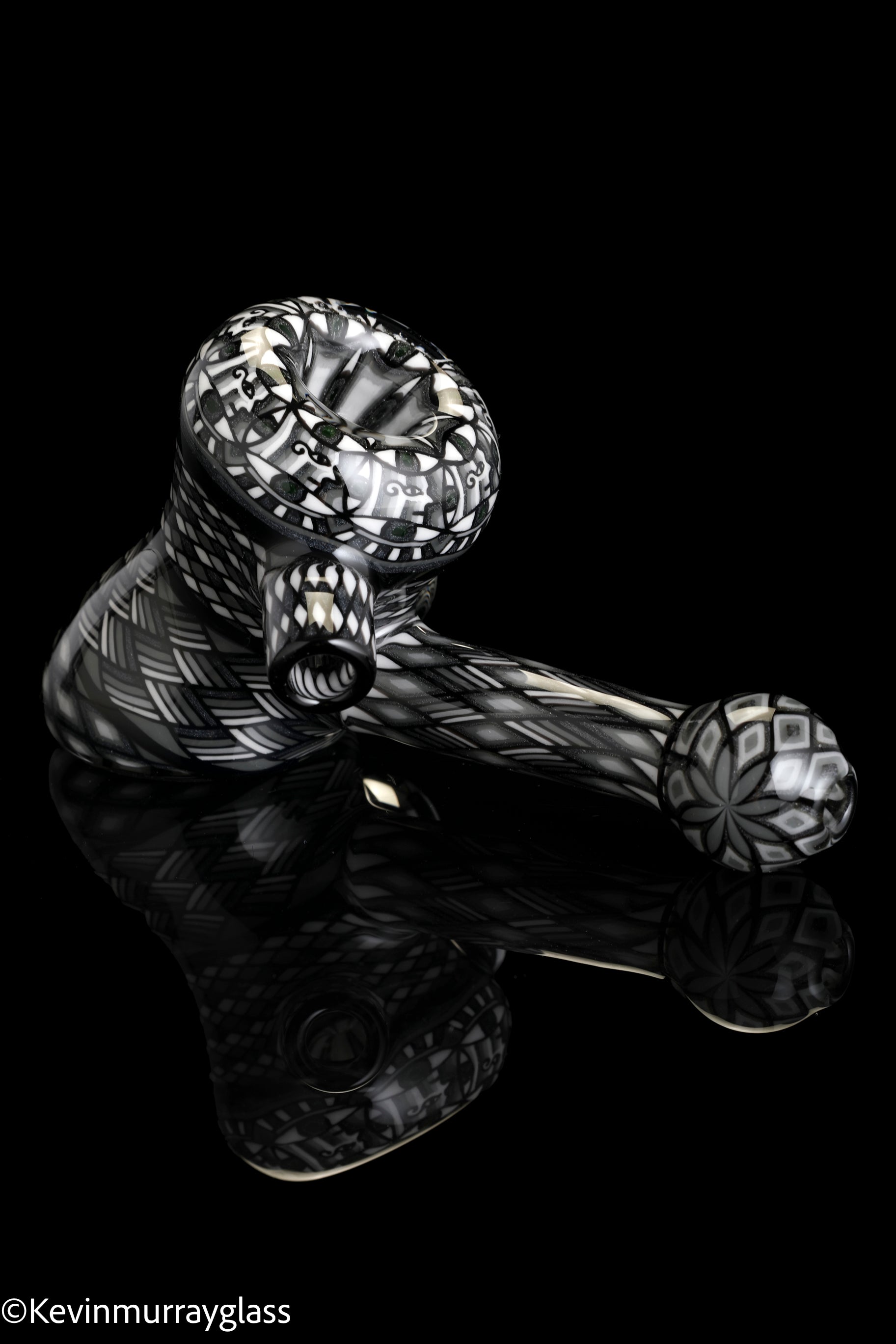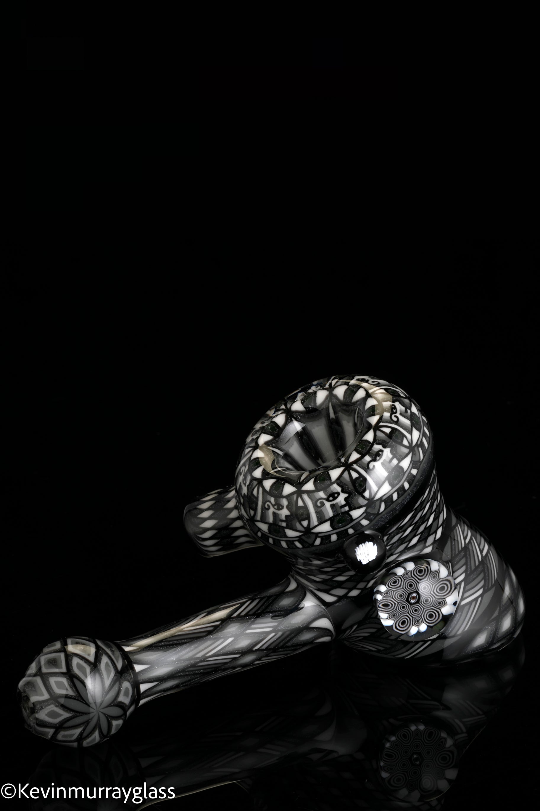 Fully worked Grayscale hammer dry pipe. Seven meticulously hand drawn and flipped fillacello sections for every inch of the piece. Signed with the signature/year murrine.