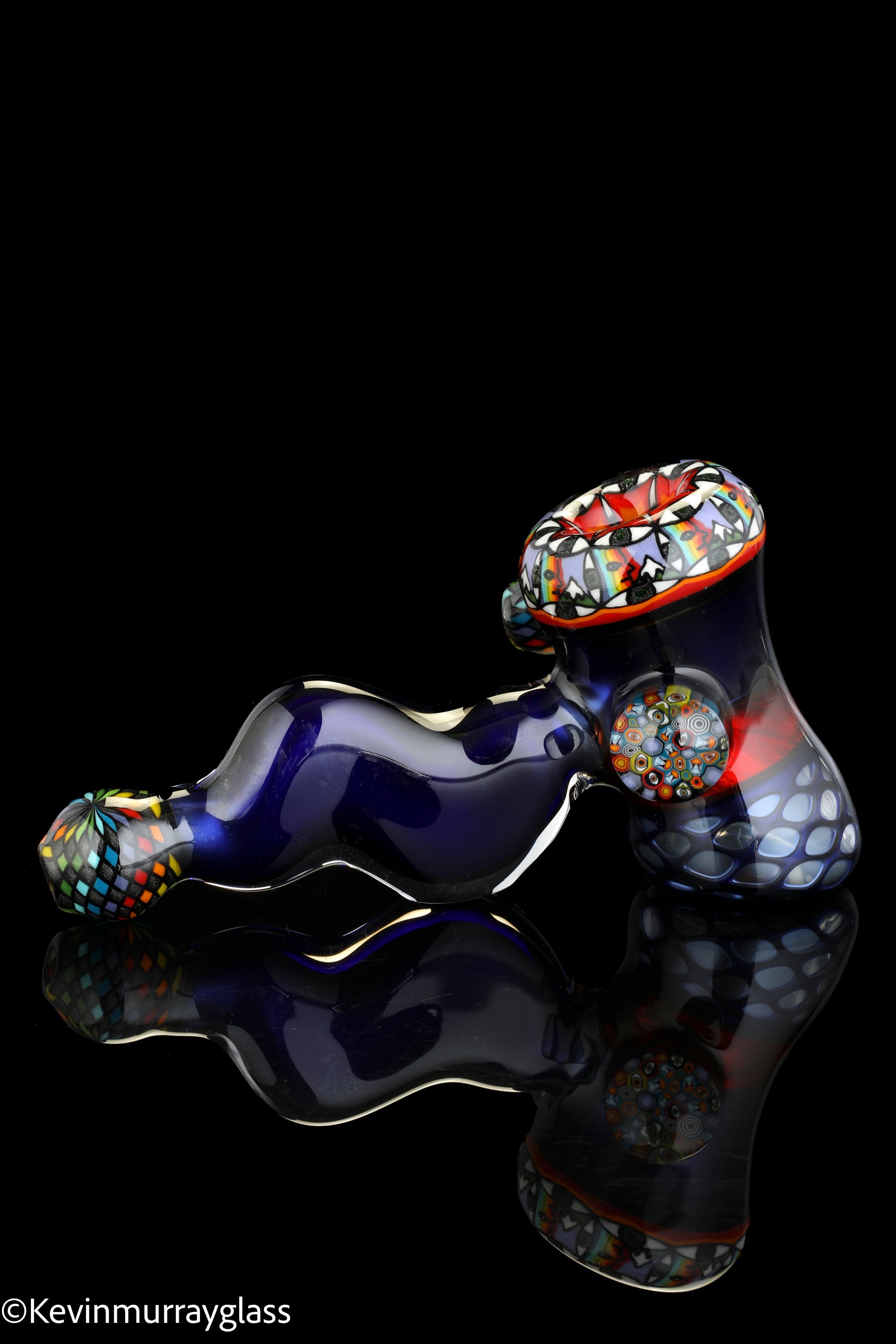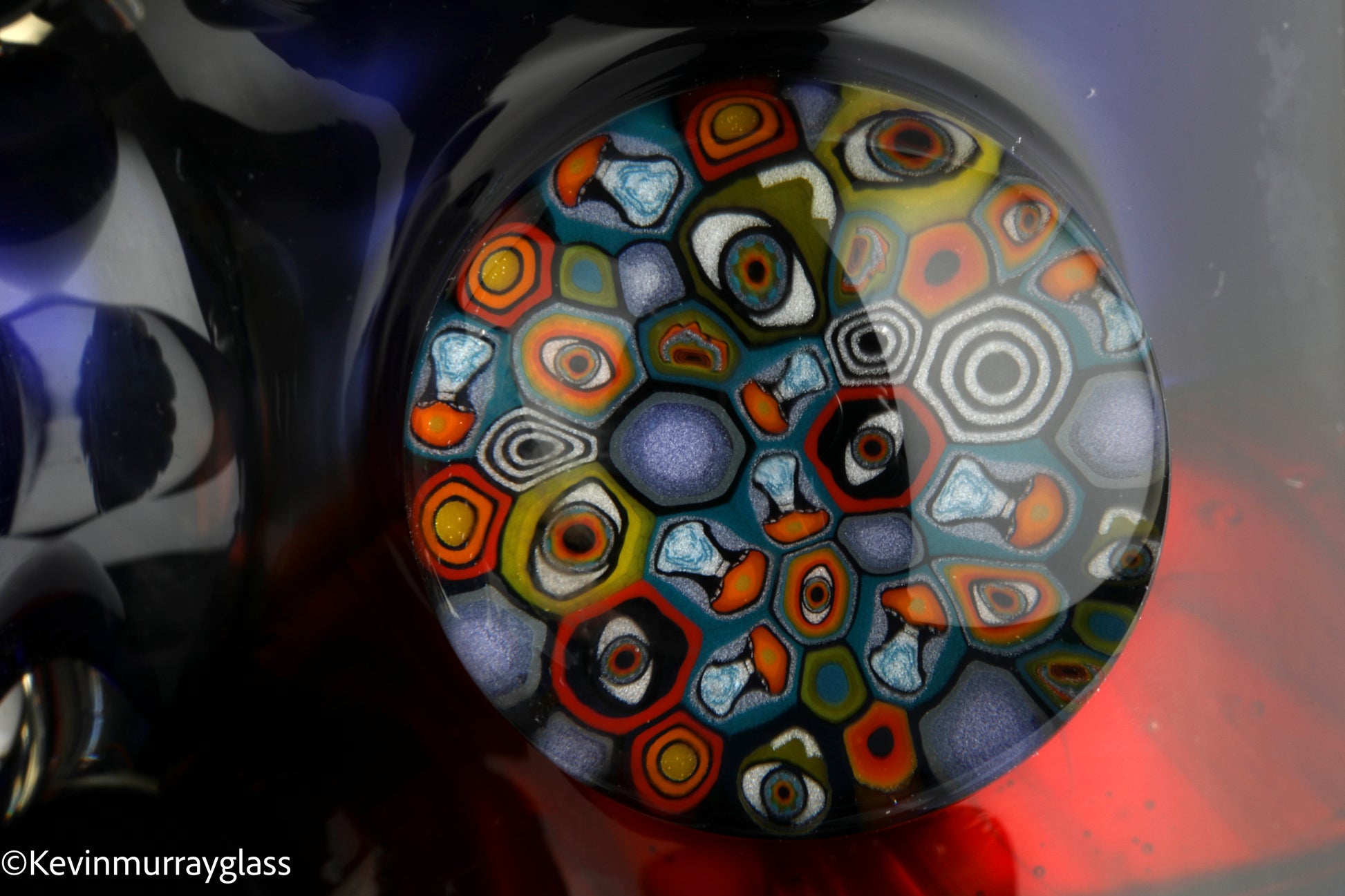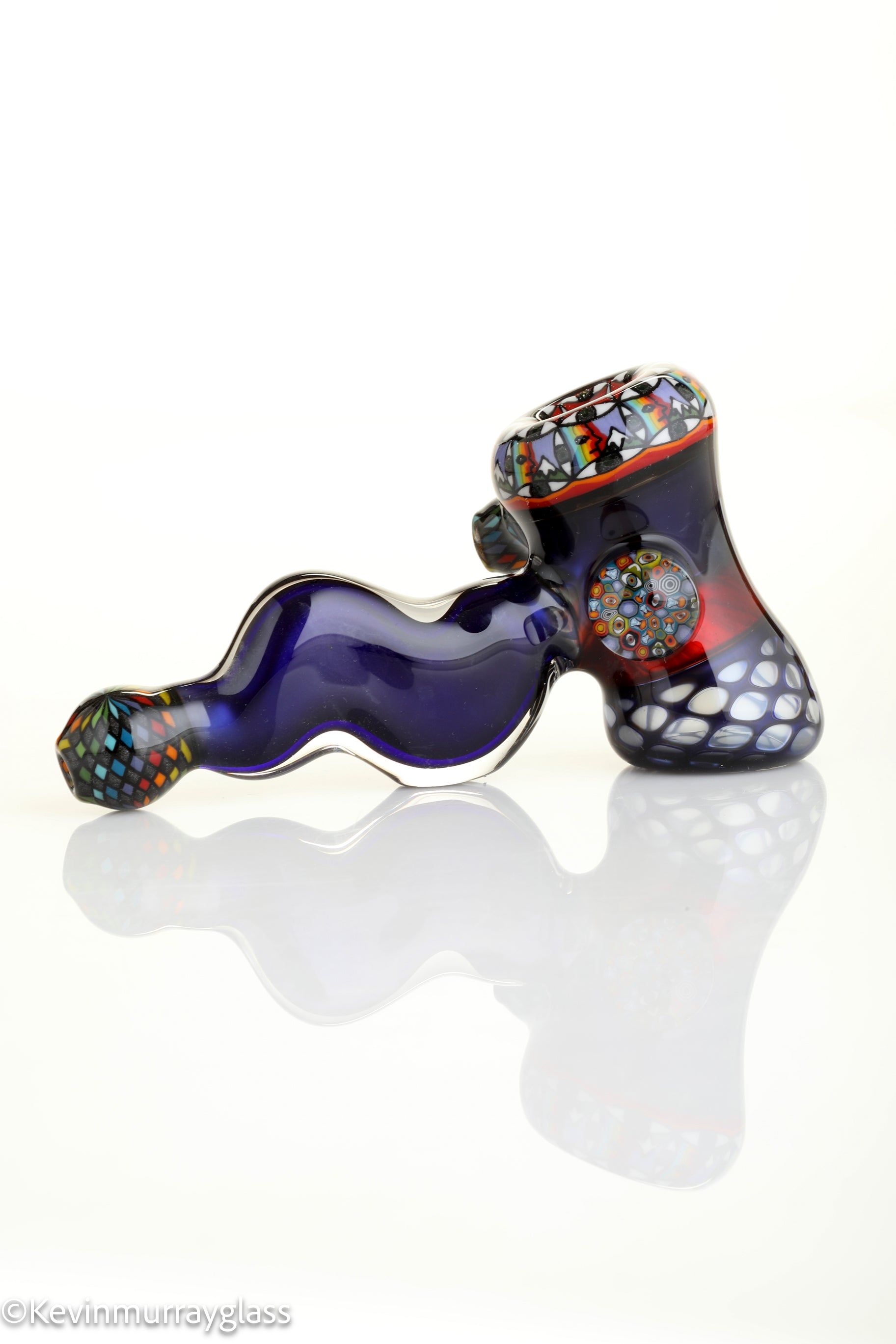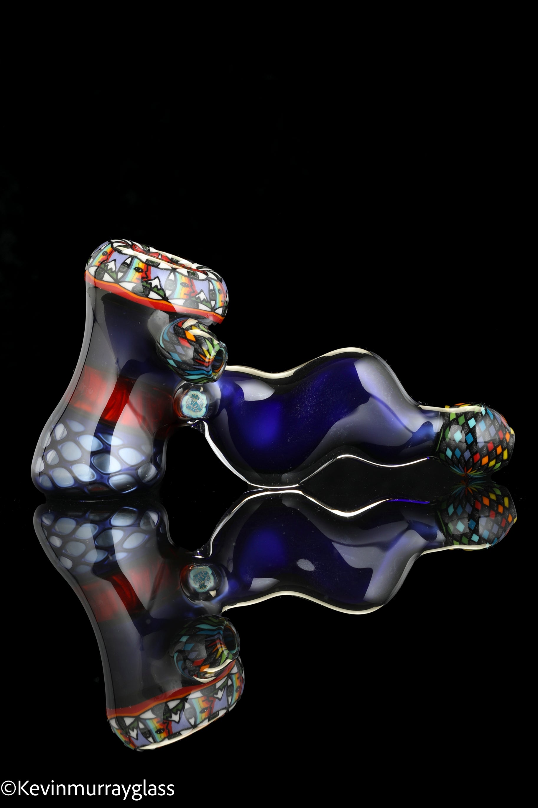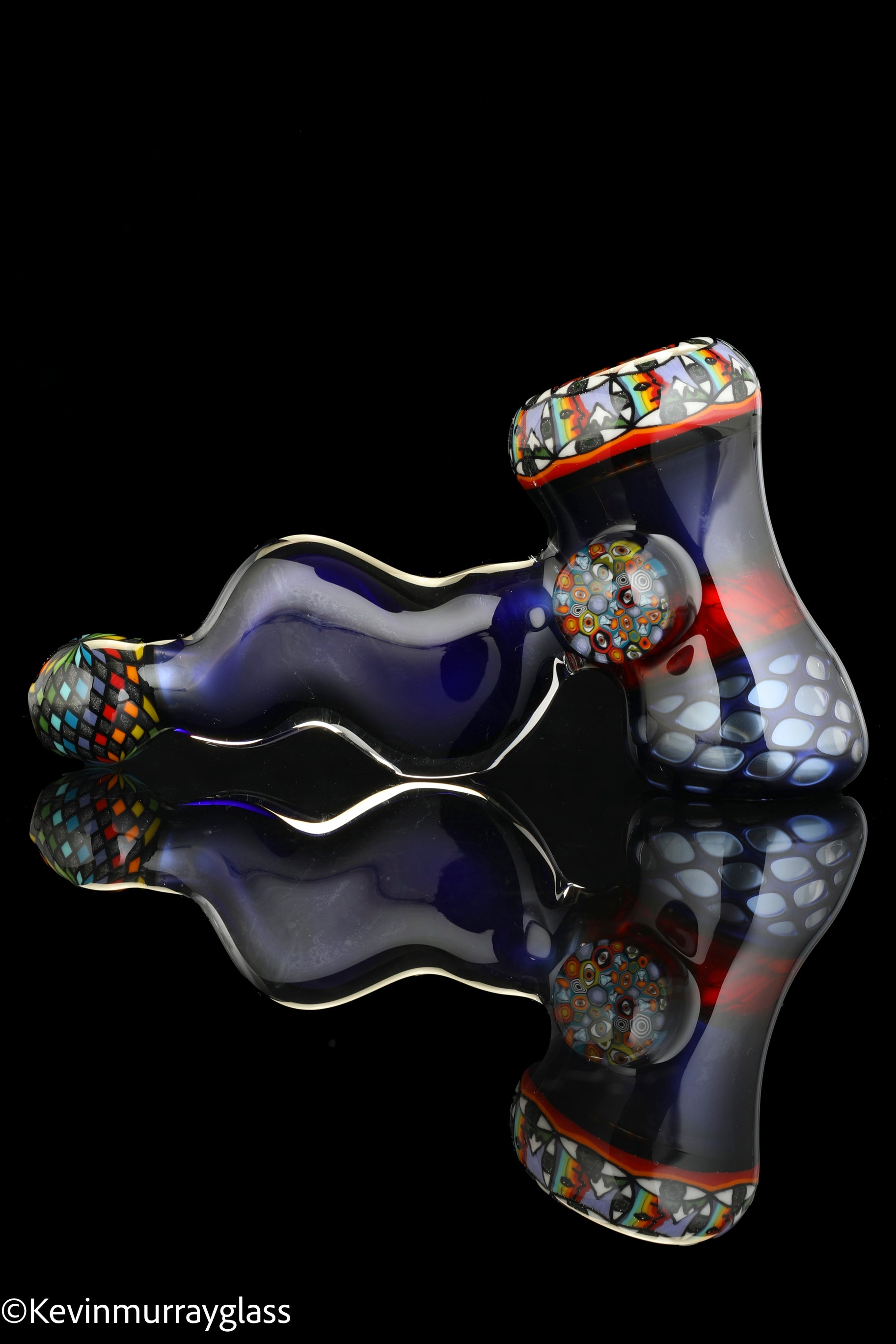 Hammer style dry piece in "candy cobalt blue" and red sections with hand drawn fillacello sections. Signed with the signature/year murrine.