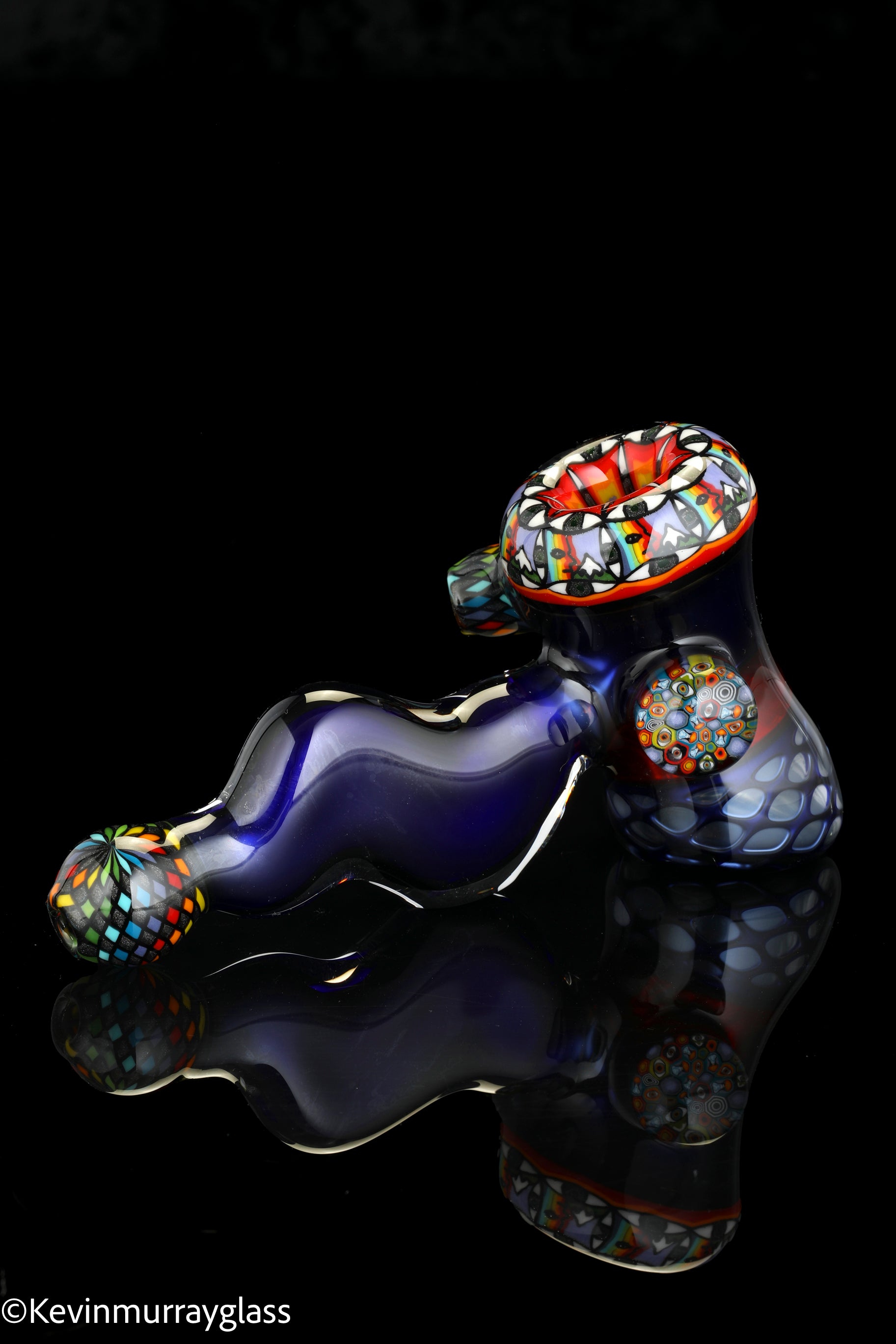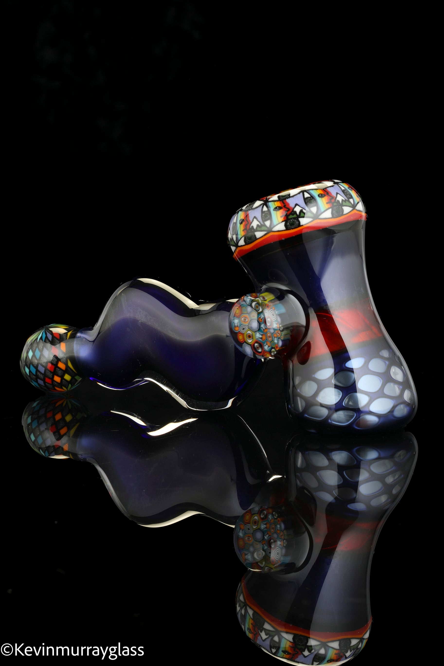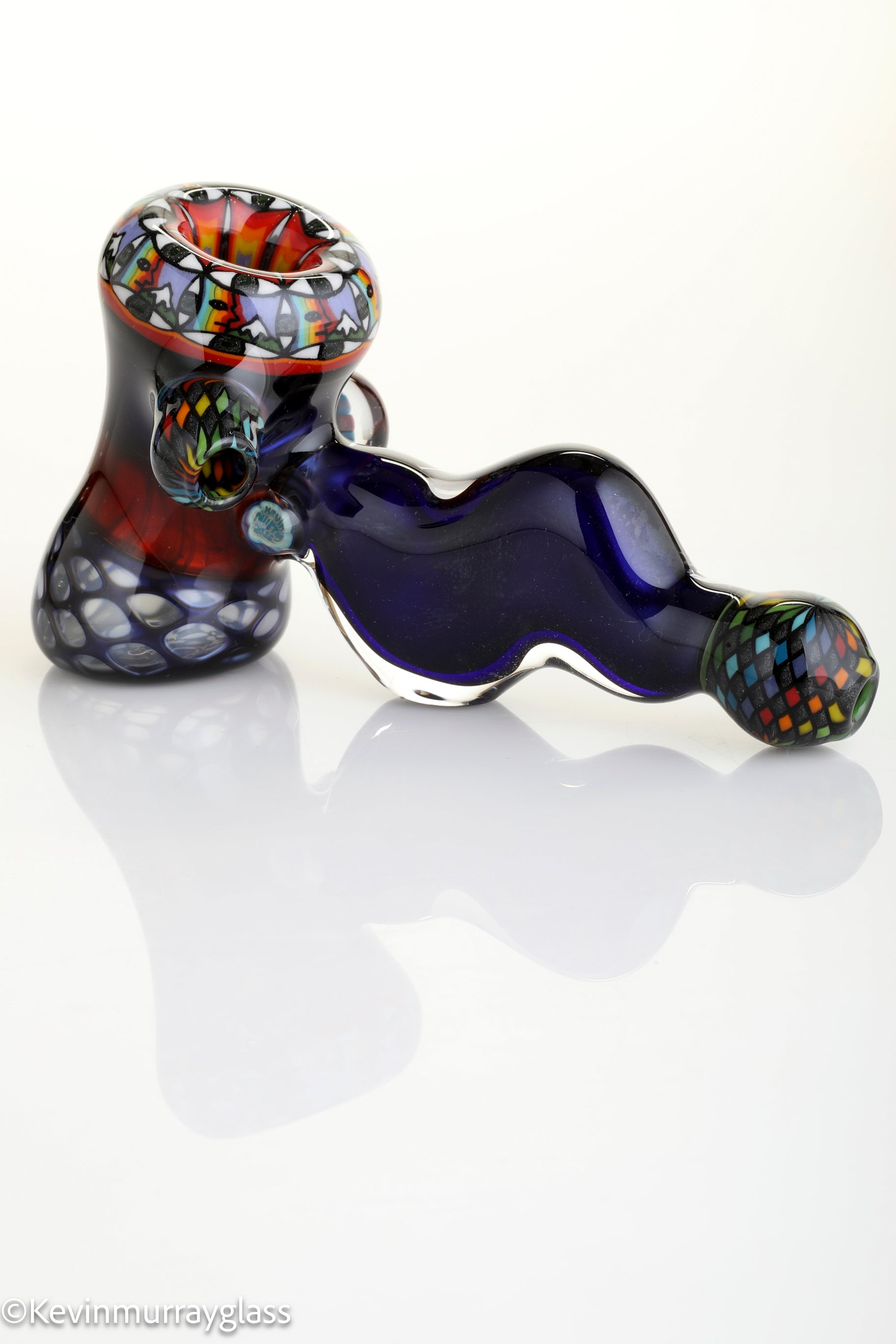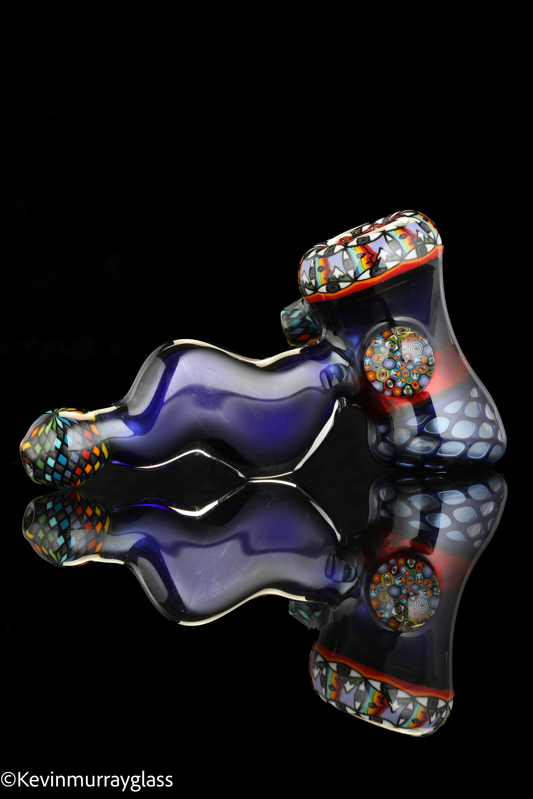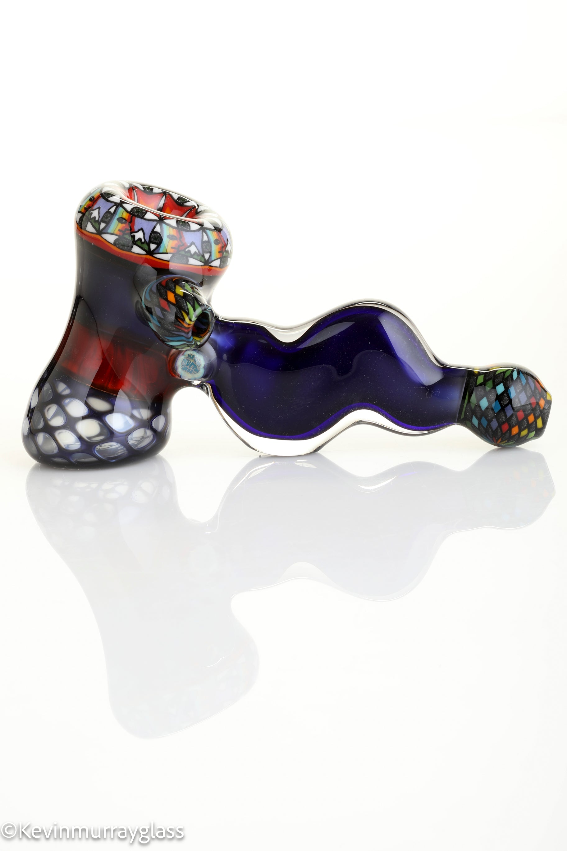 Hammer style dry piece in "candy cobalt blue" and red sections with hand drawn fillacello sections. Signed with the signature/year murrine.