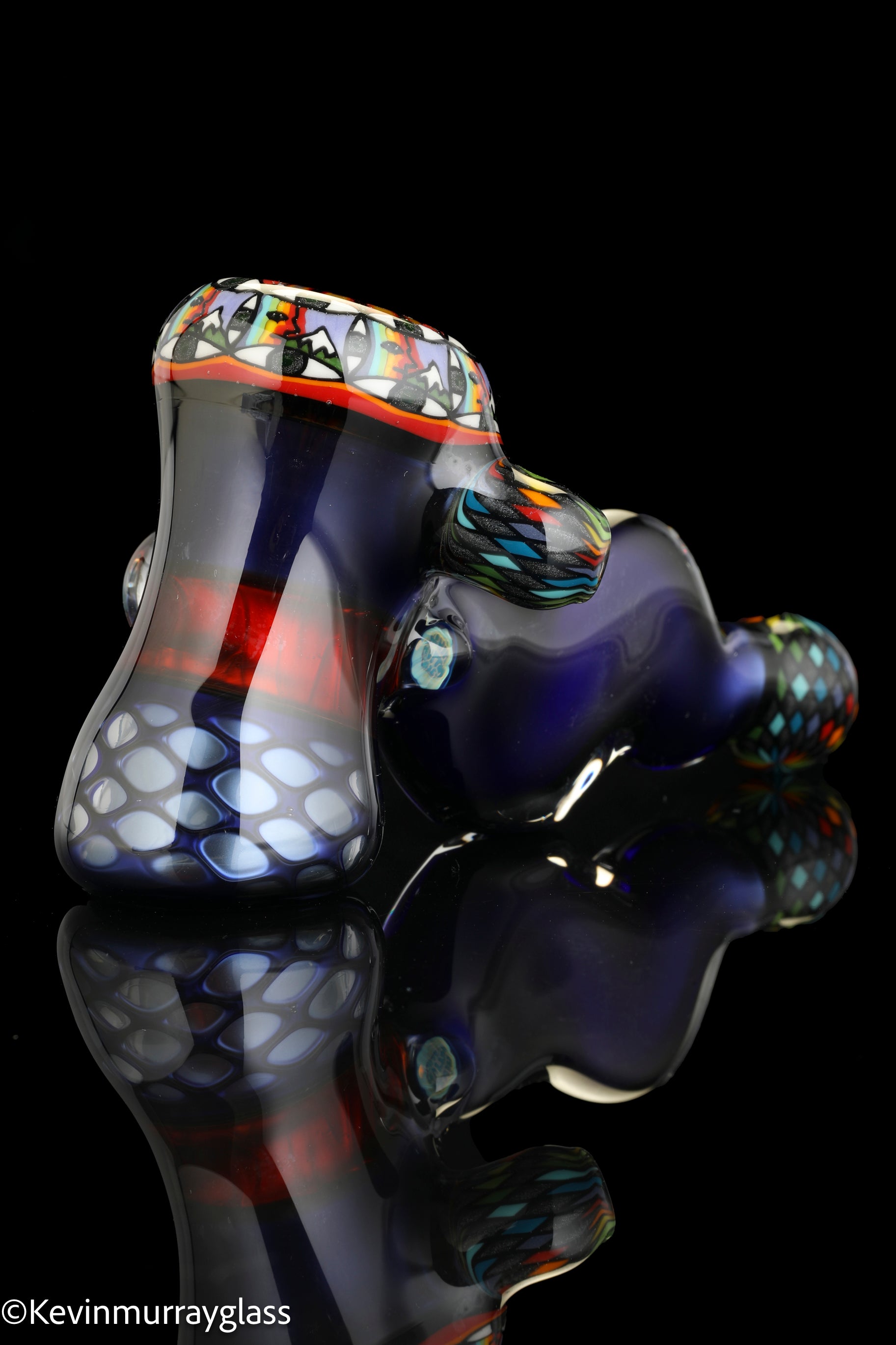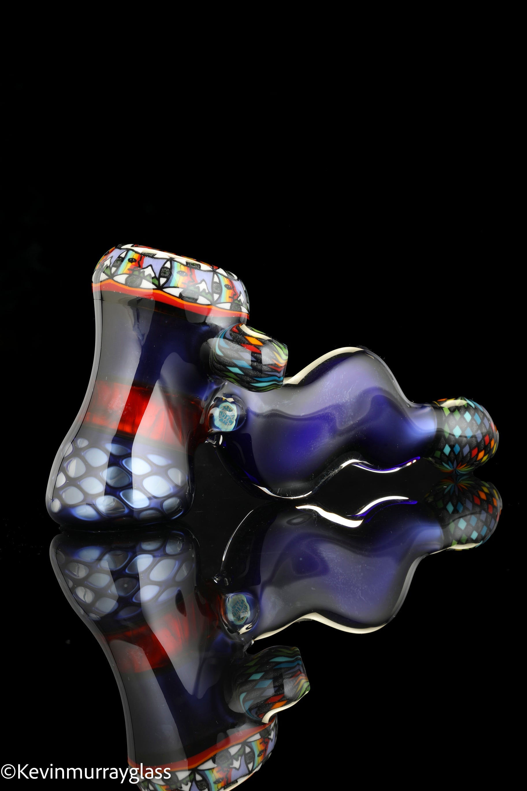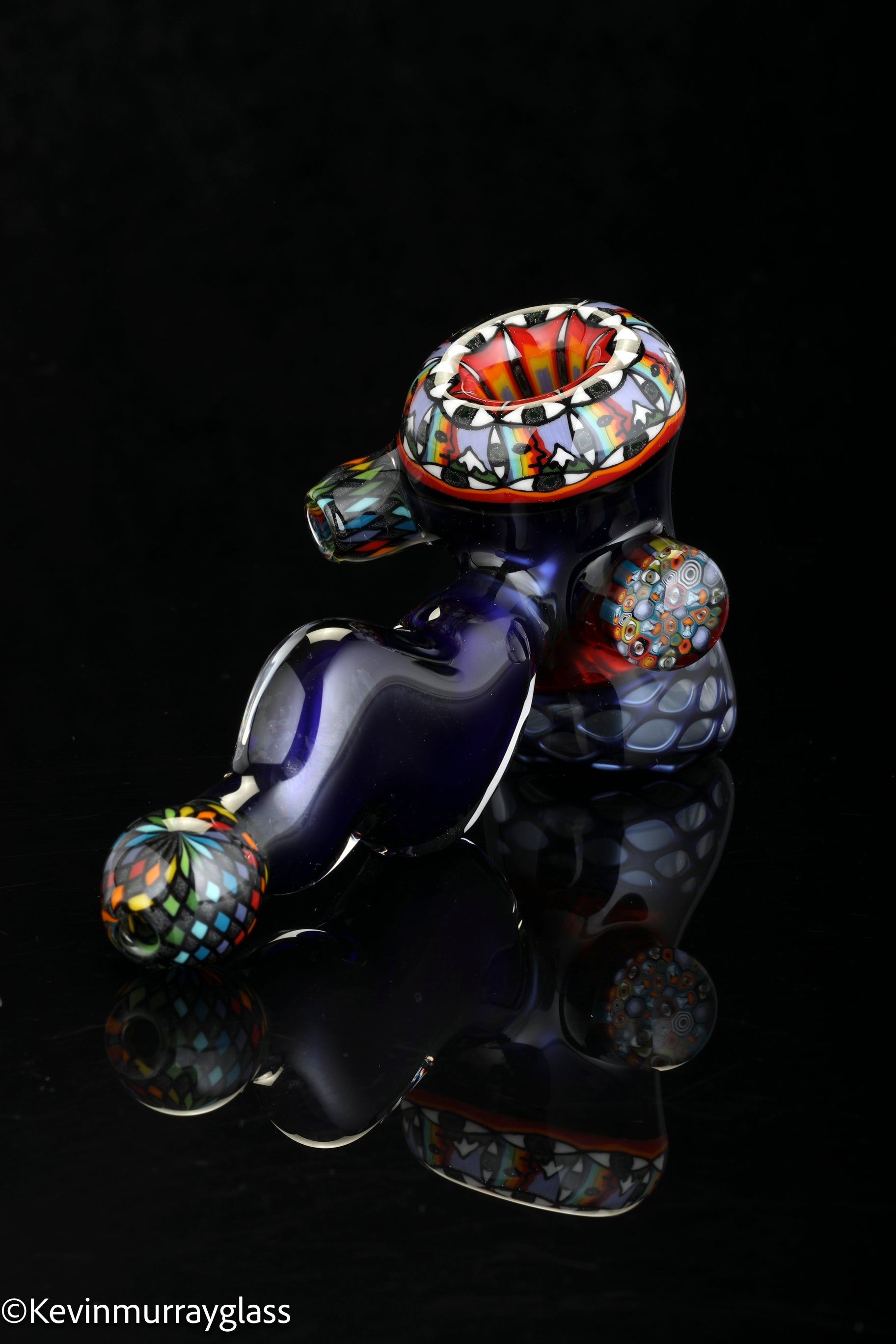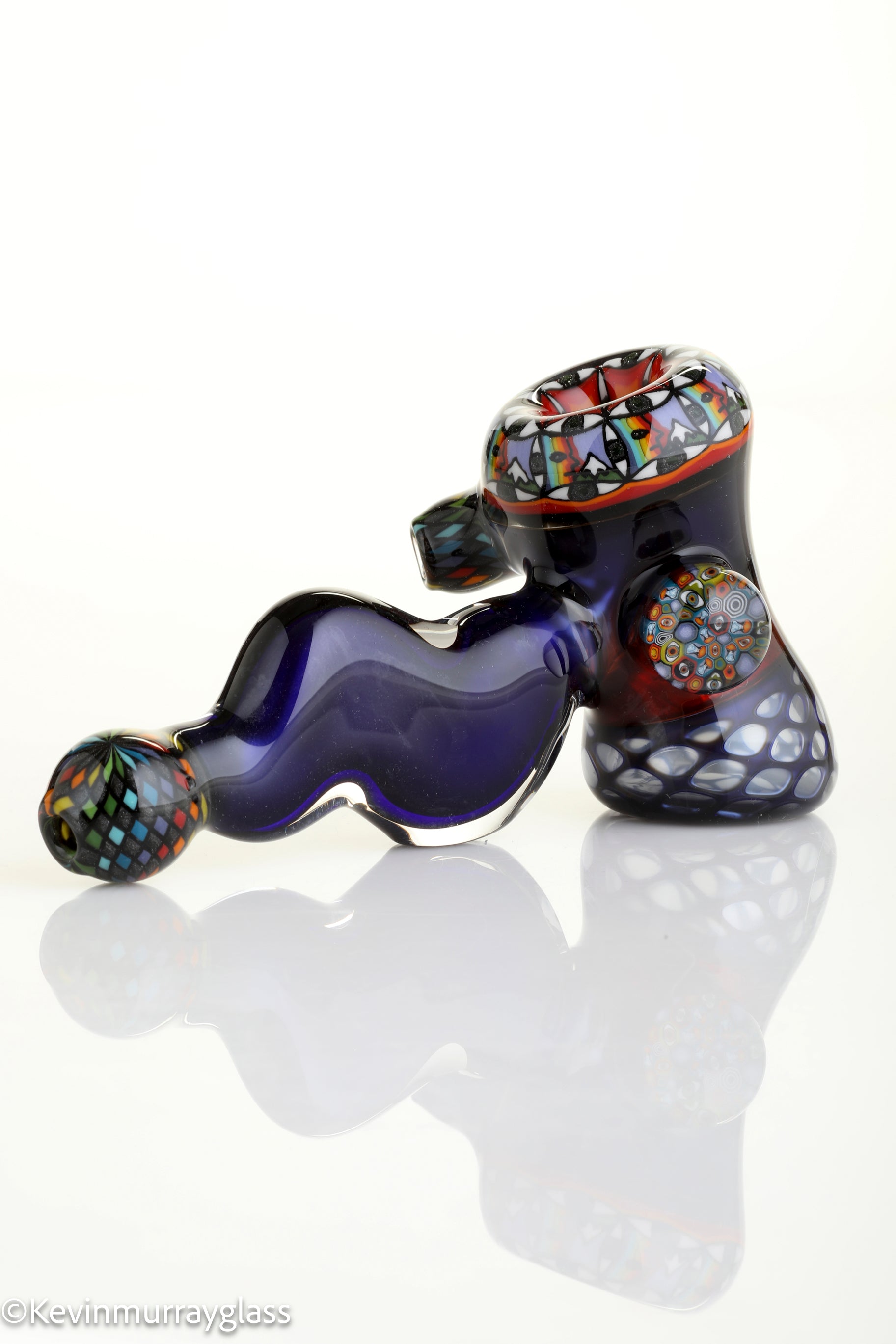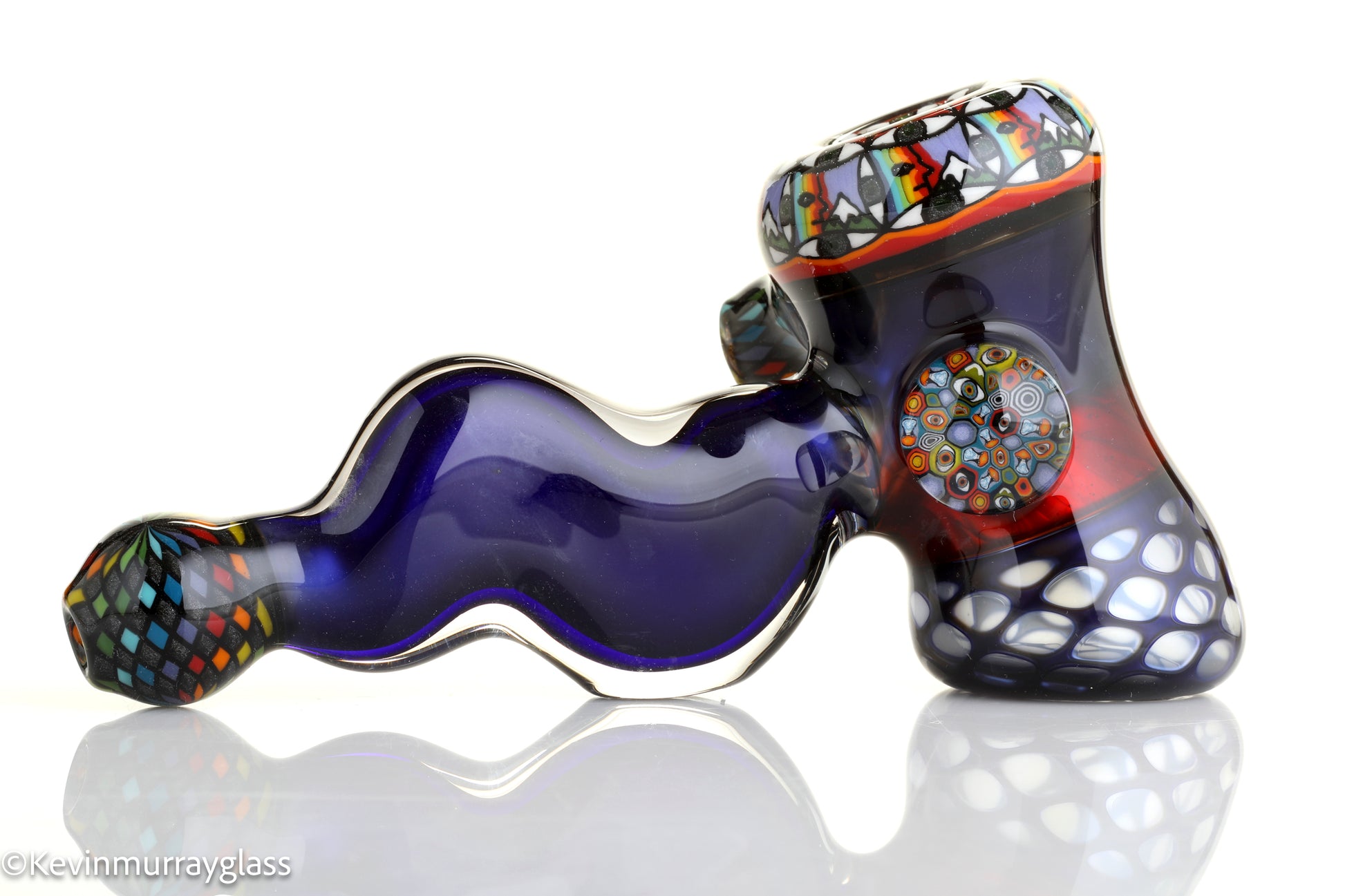 Hammer style dry piece in "candy cobalt blue" and red sections with hand drawn fillacello sections. Signed with the signature/year murrine.