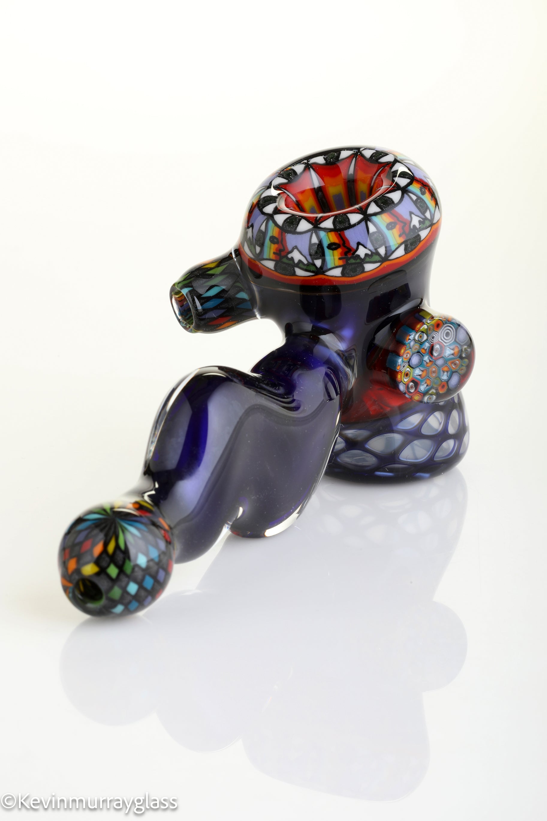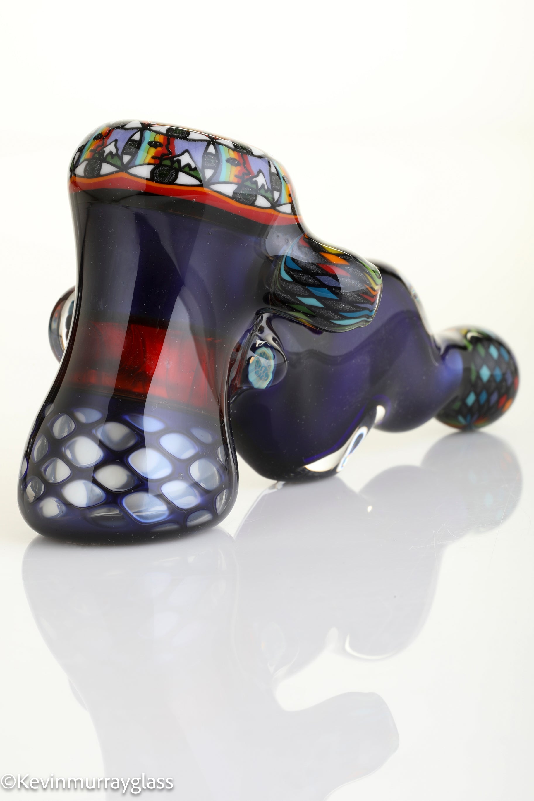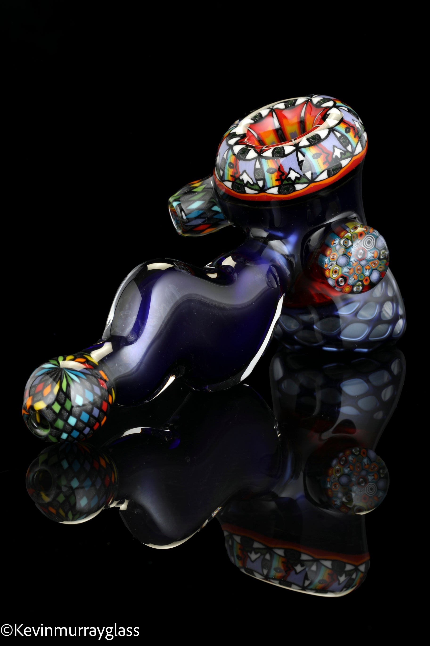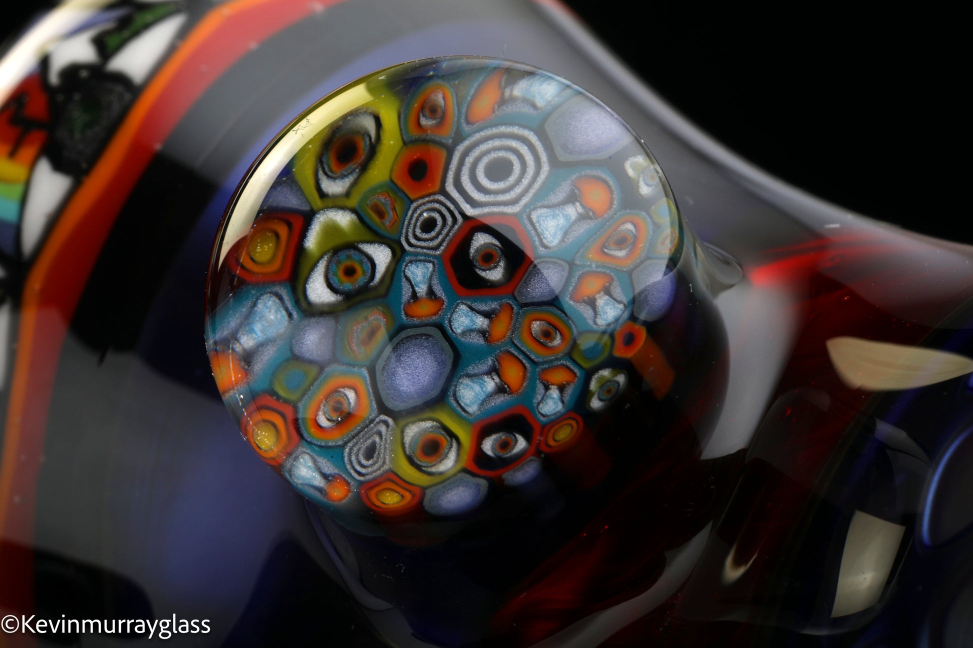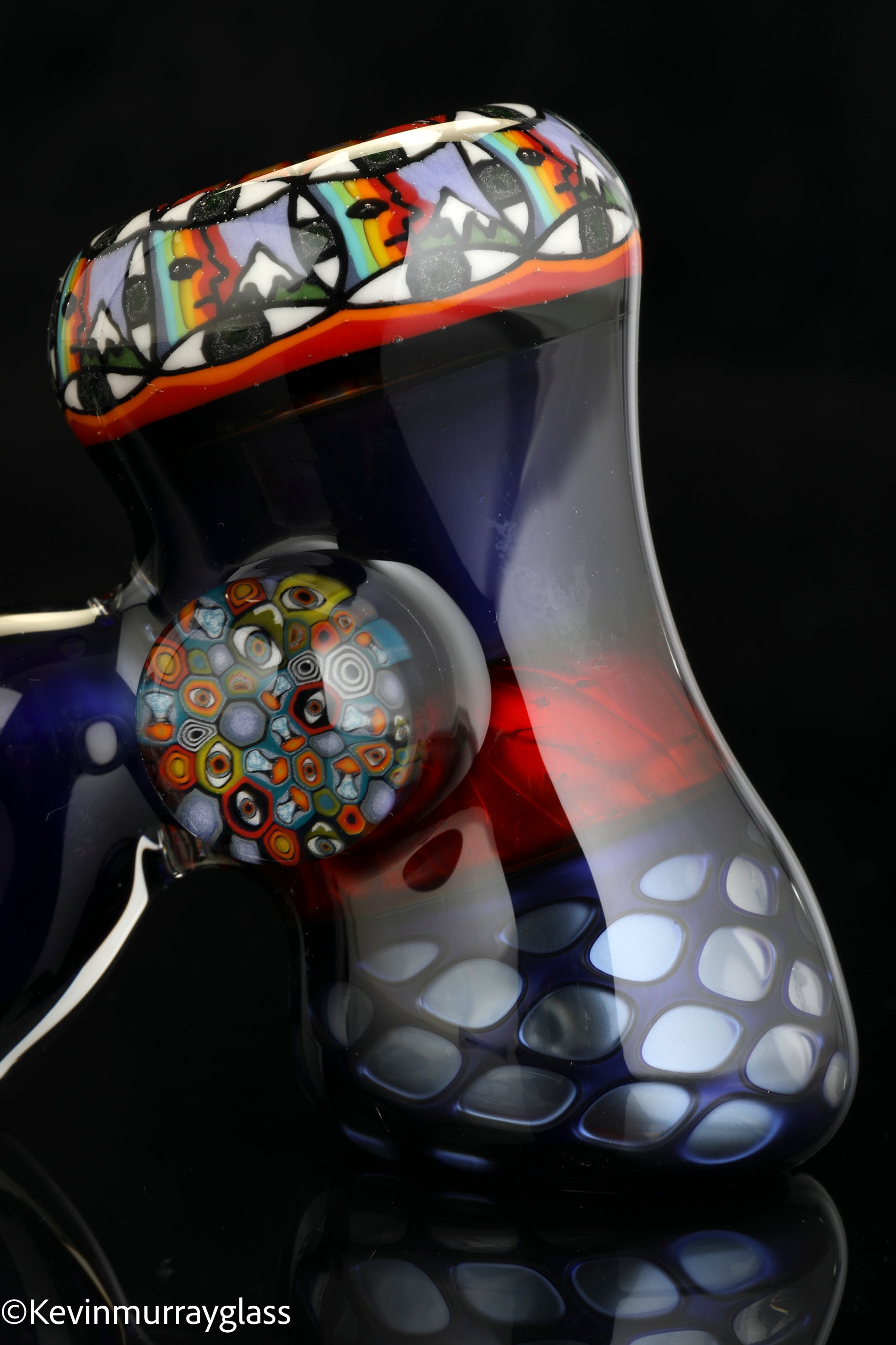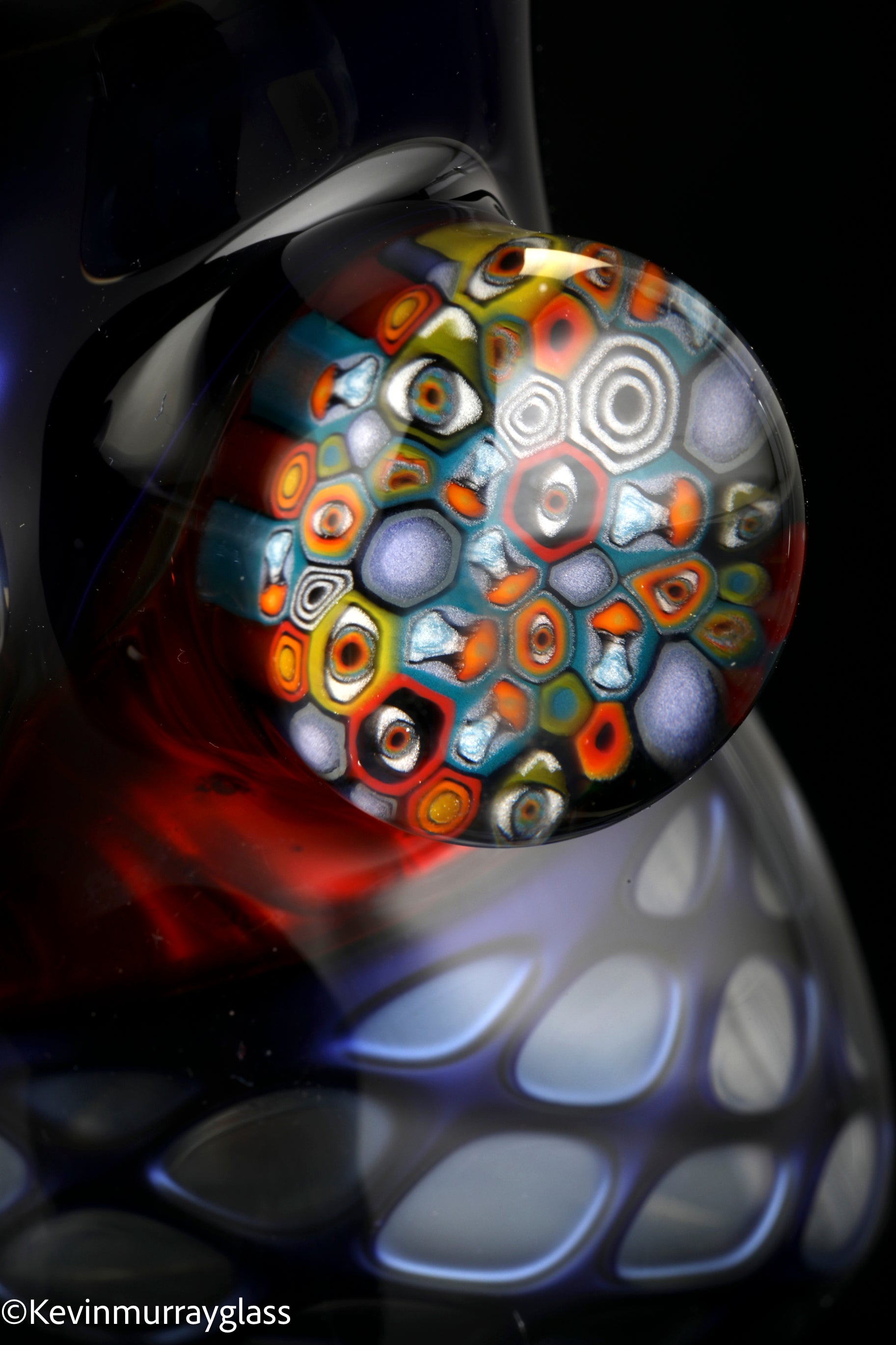 Hammer style dry piece in "candy cobalt blue" and red sections with hand drawn fillacello sections. Signed with the signature/year murrine.