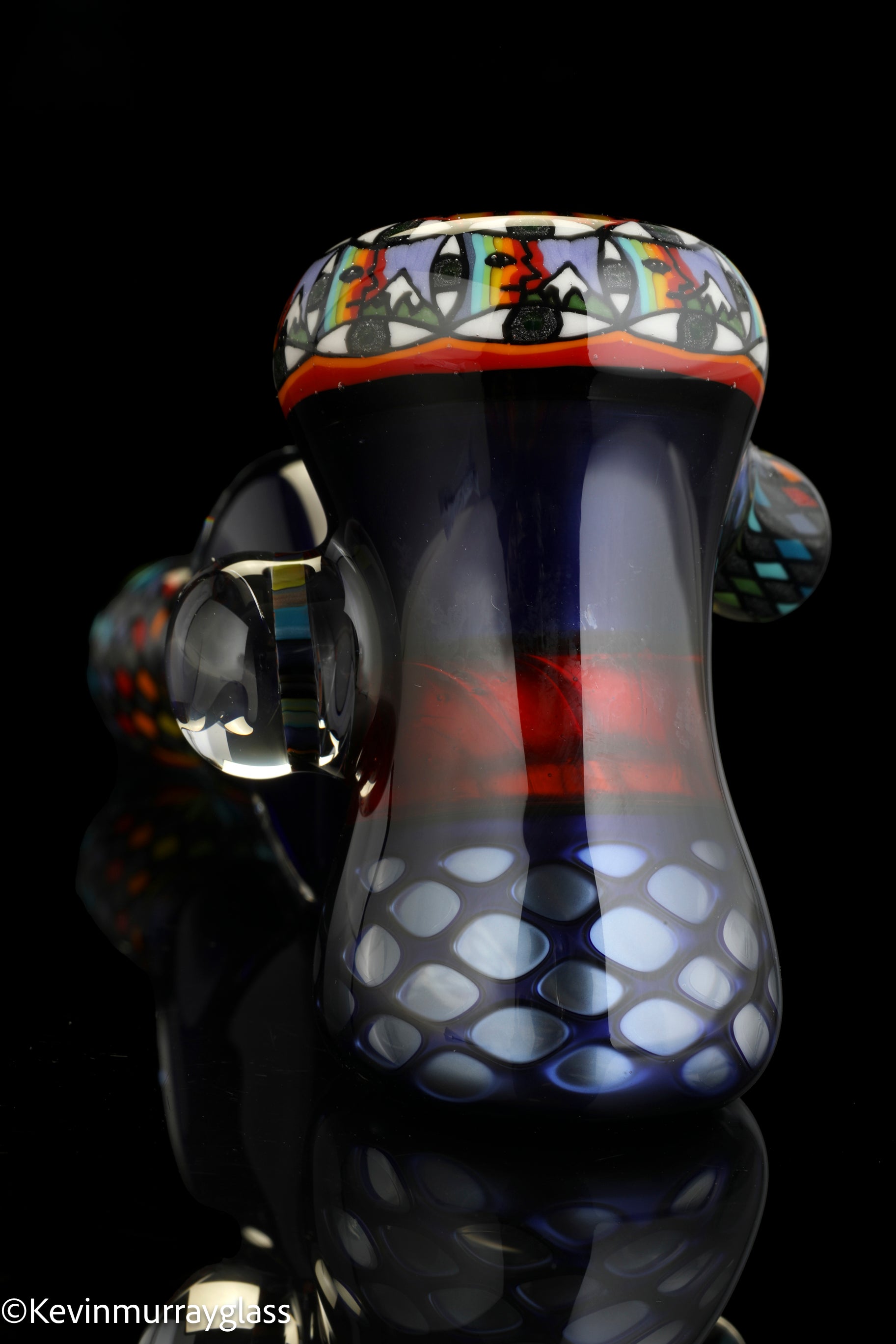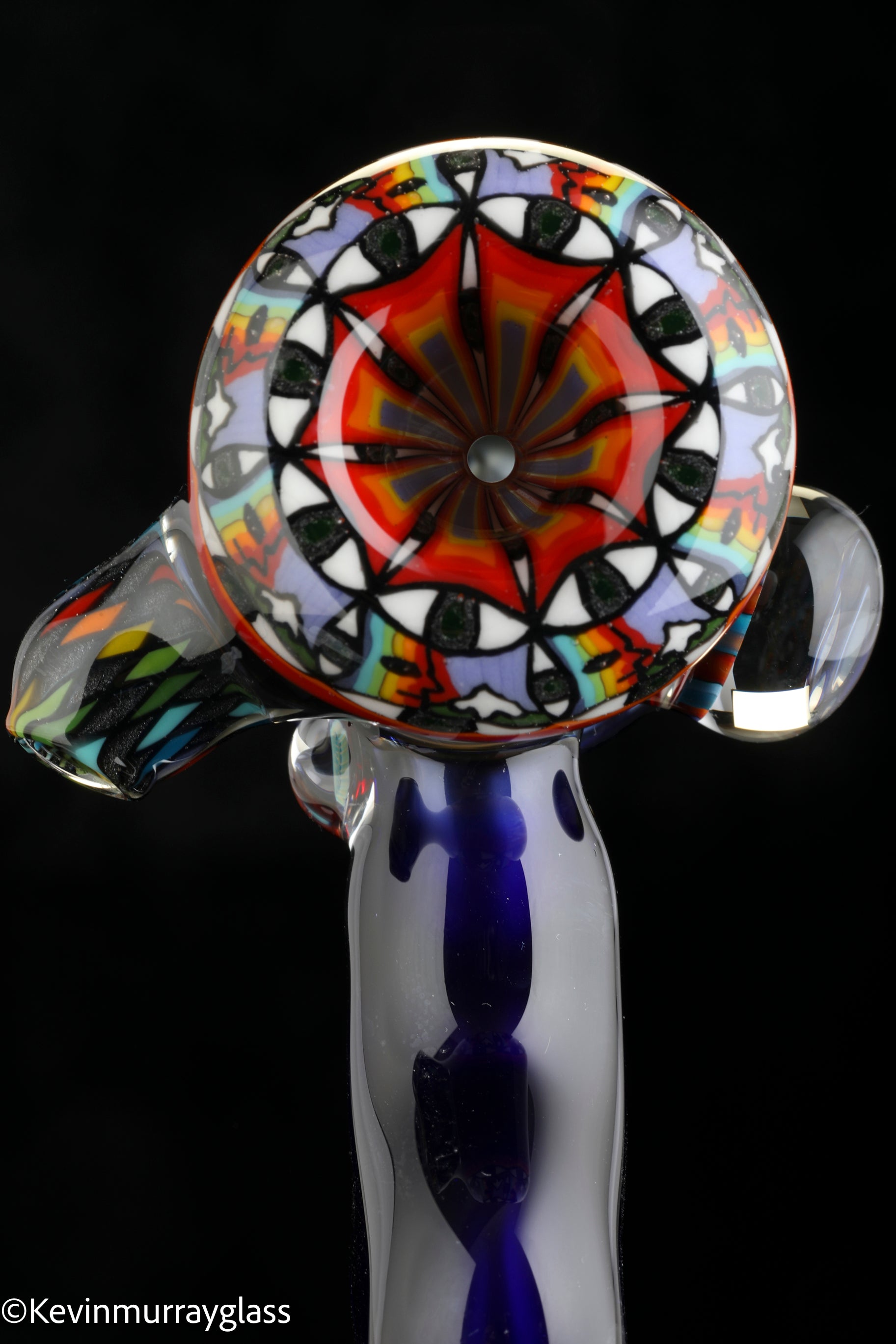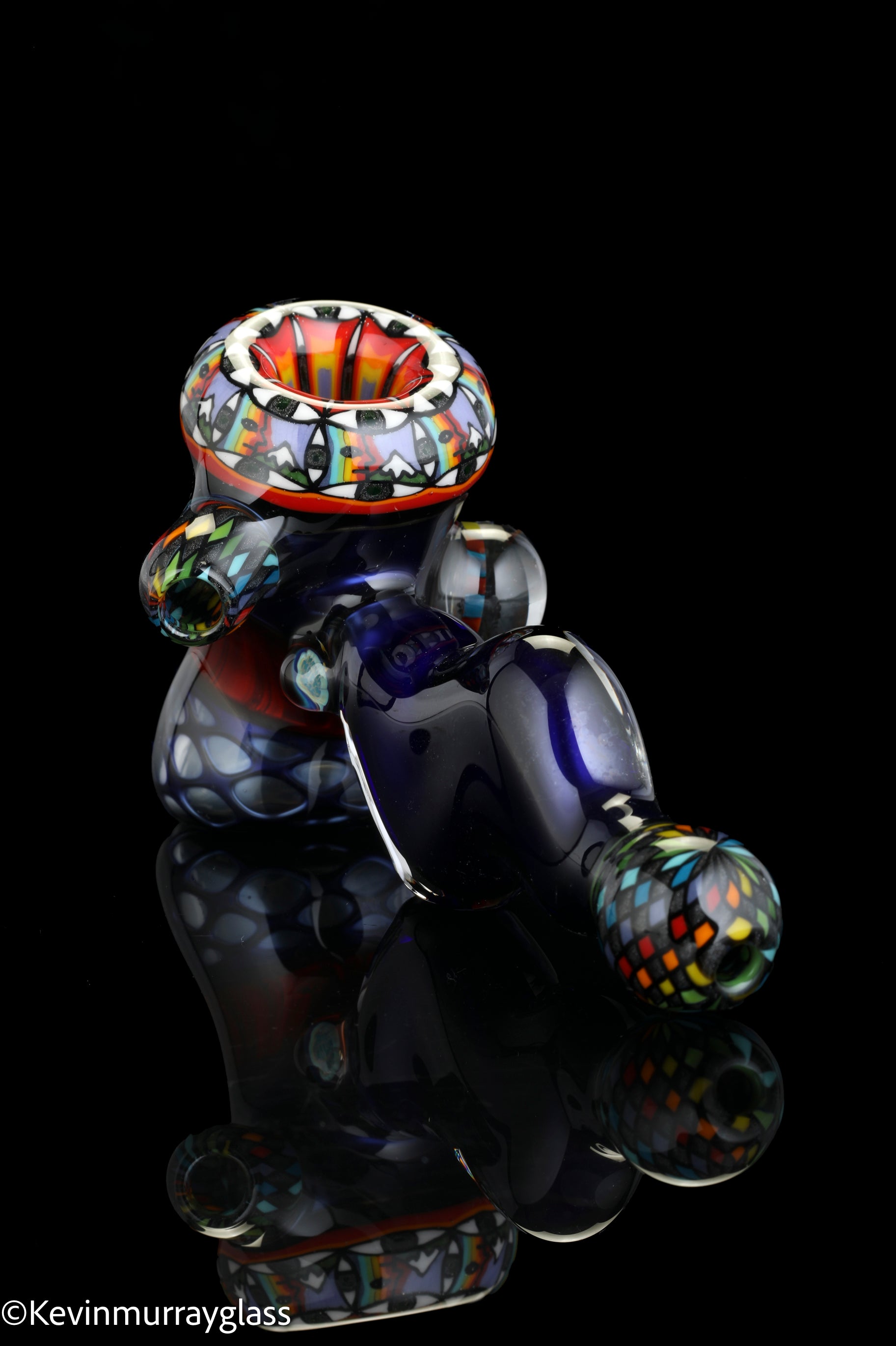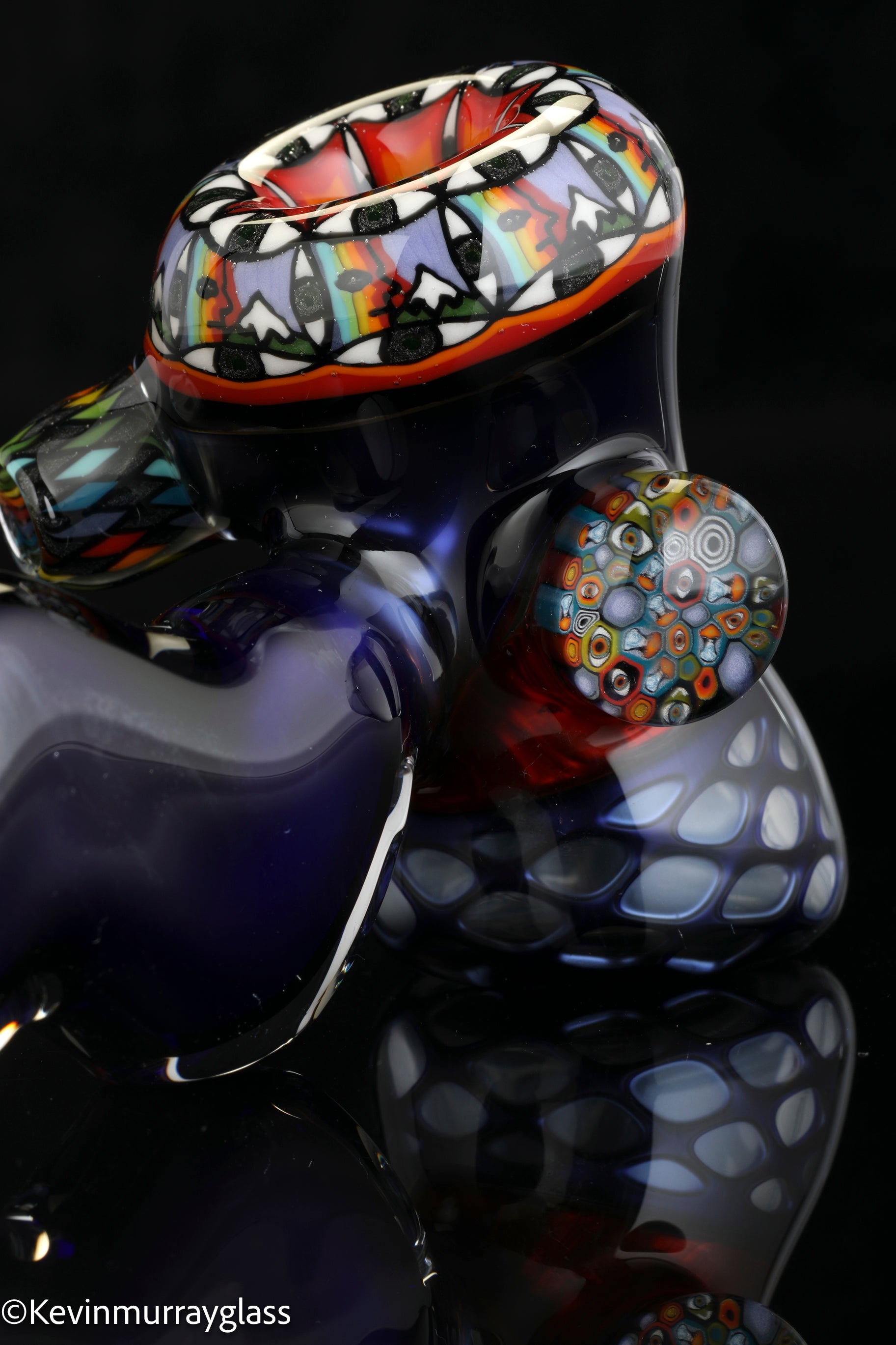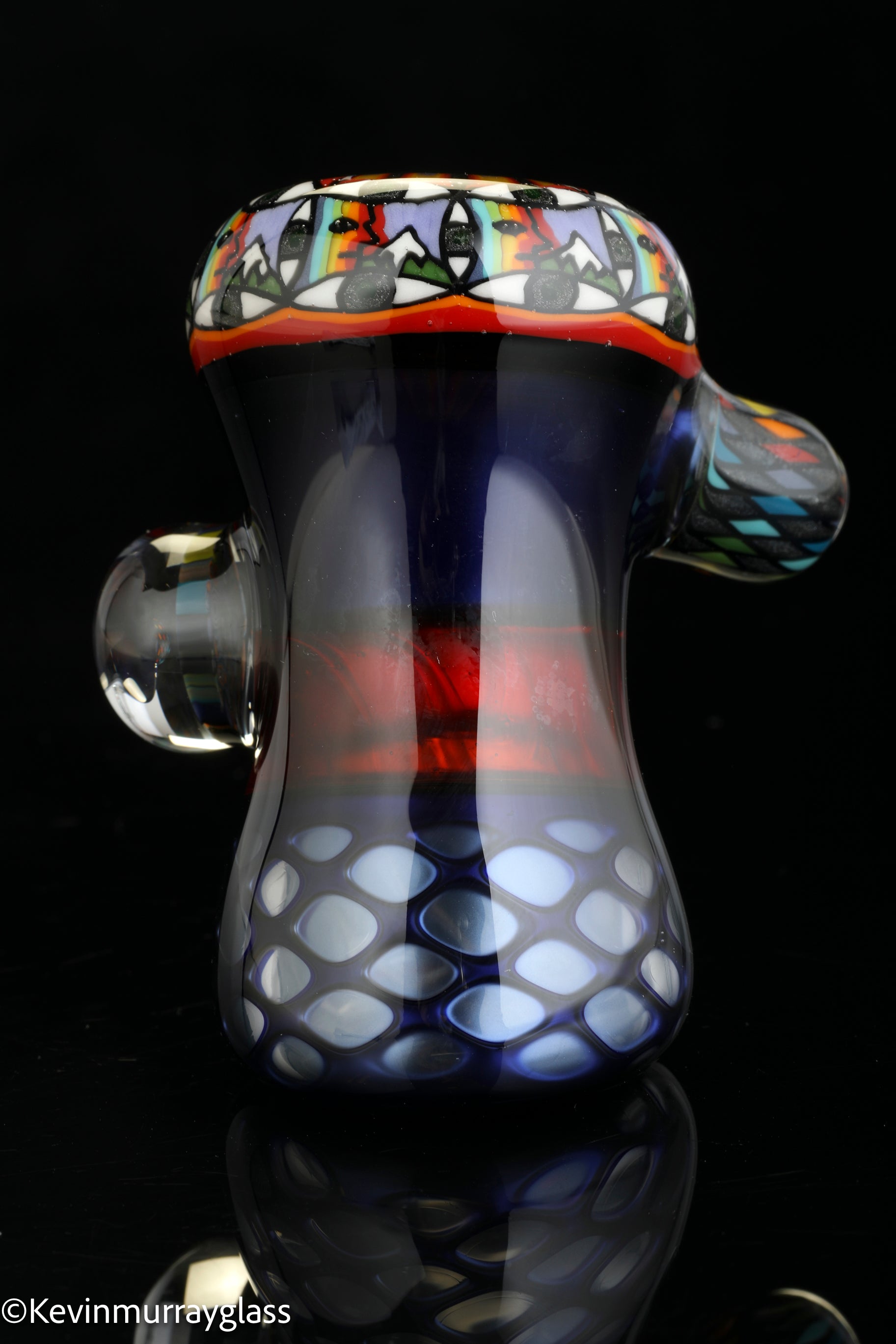 Hammer style dry piece in "candy cobalt blue" and red sections with hand drawn fillacello sections. Signed with the signature/year murrine.
