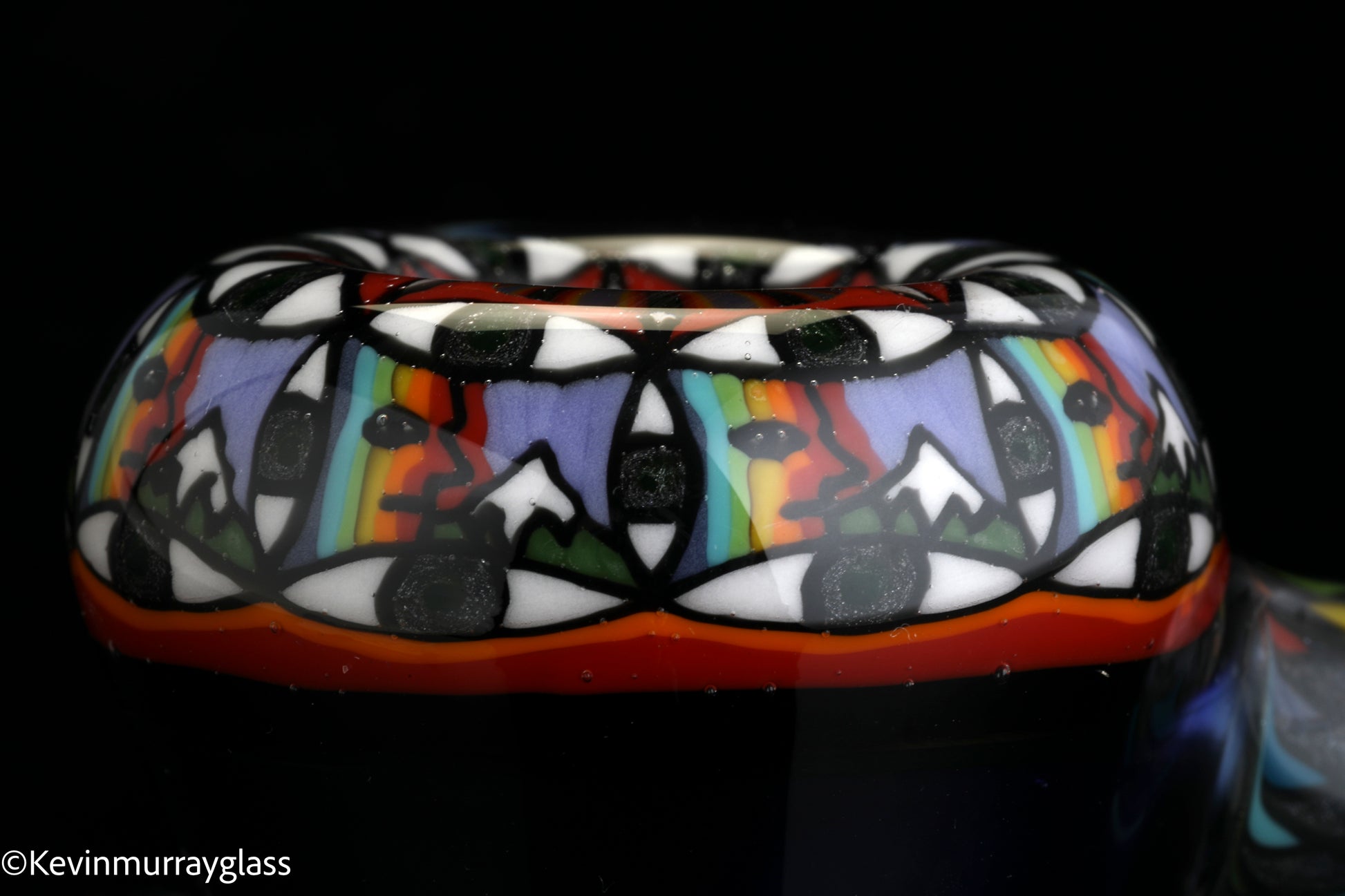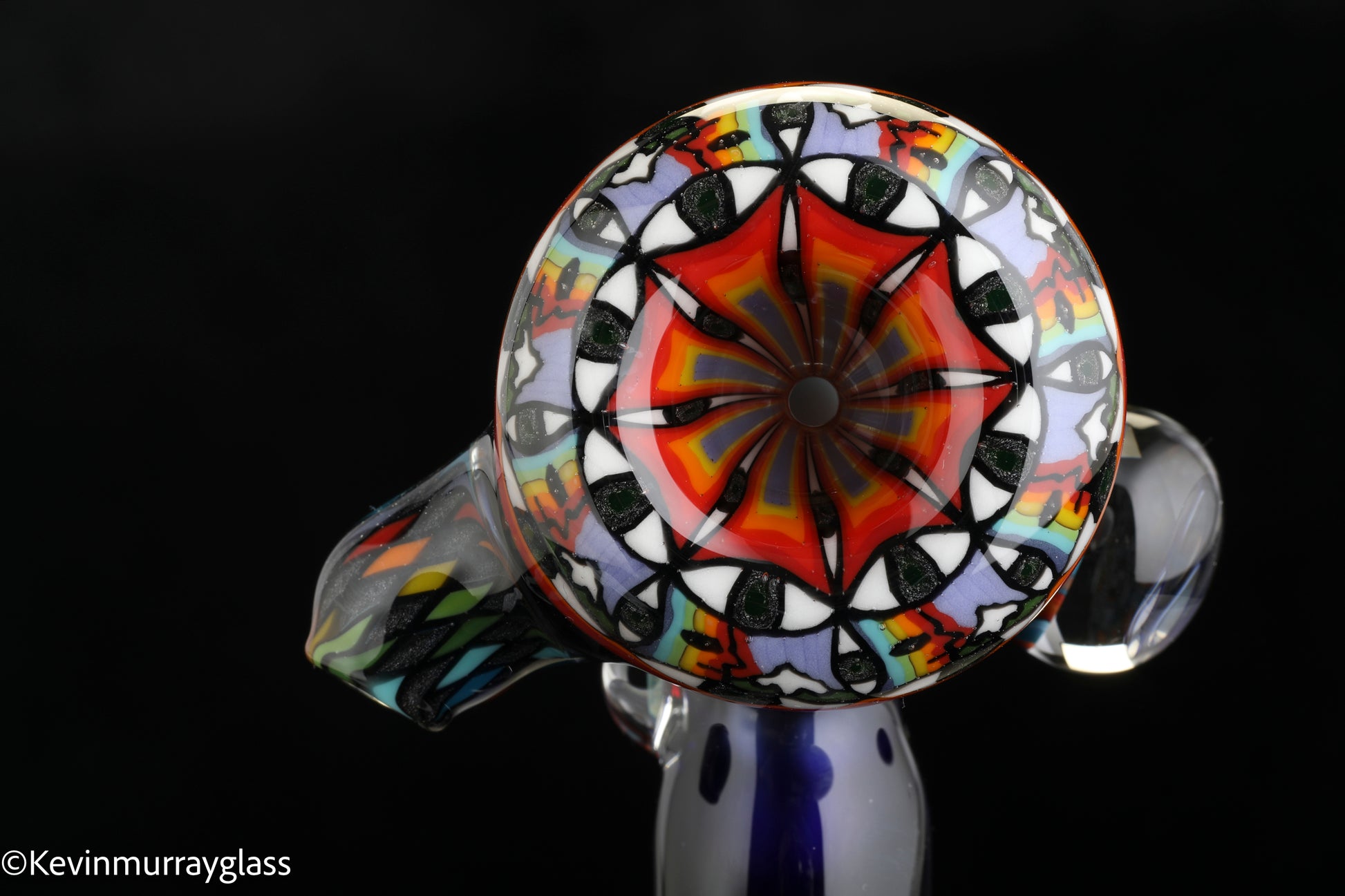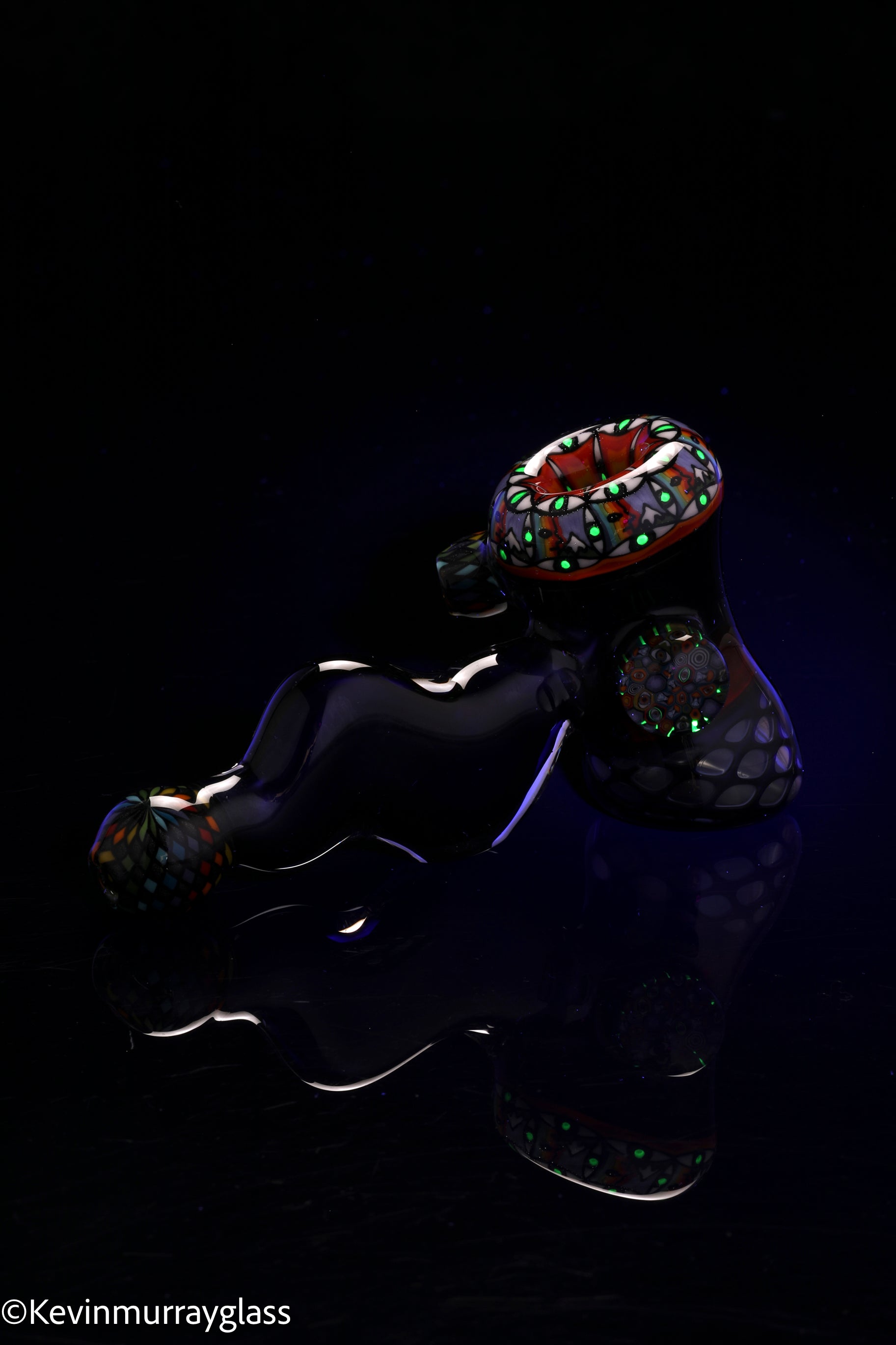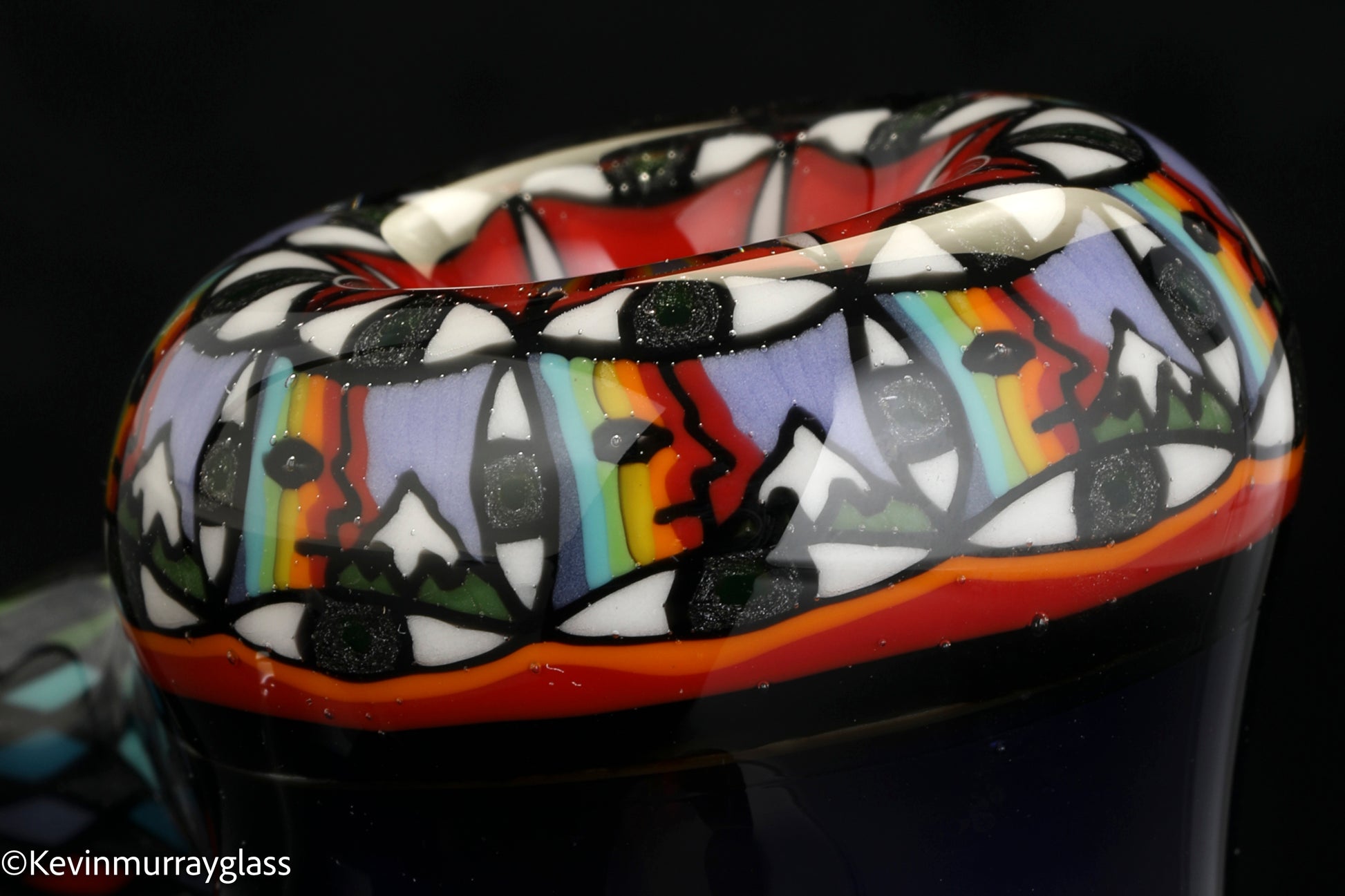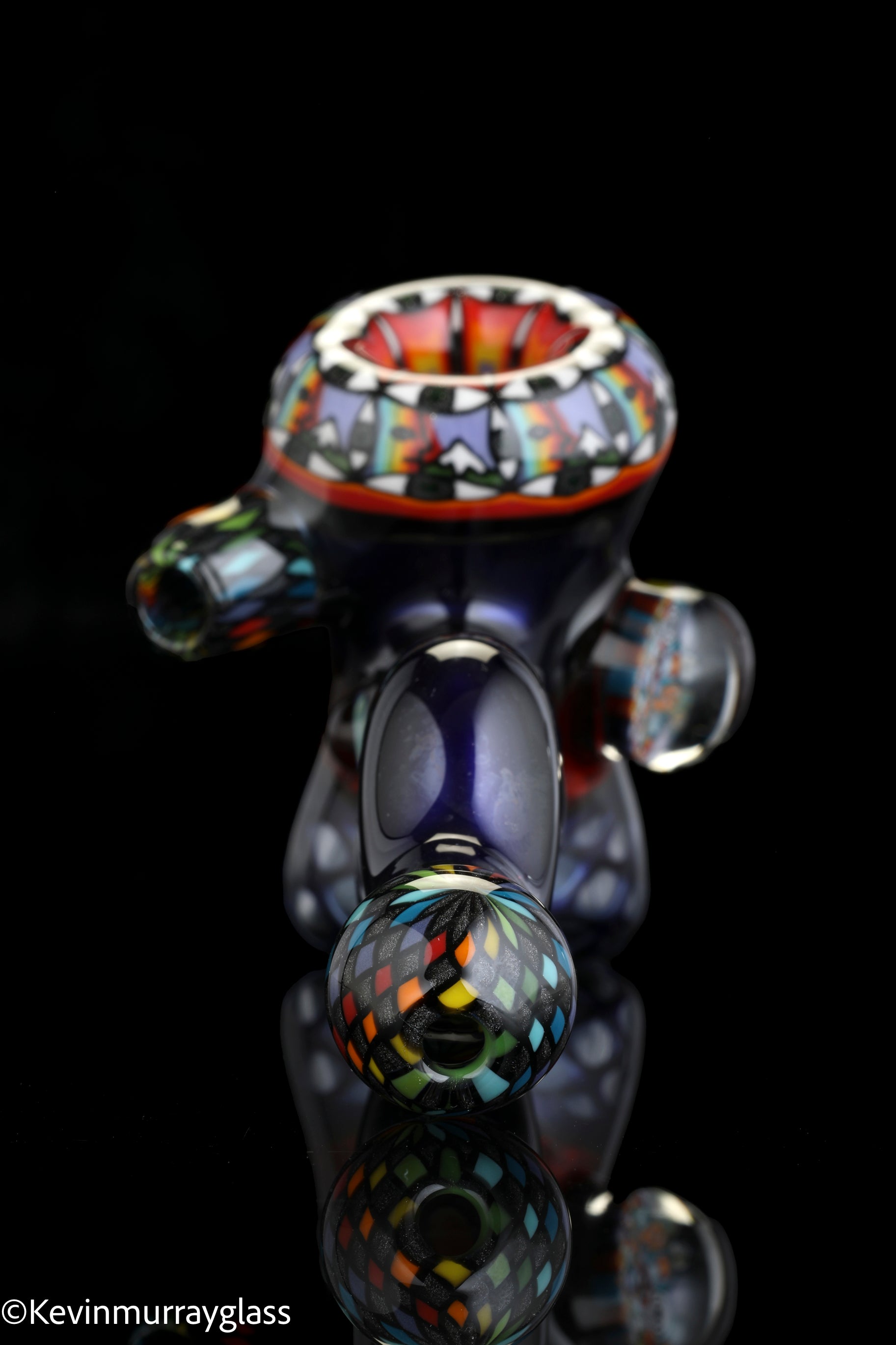 Hammer style dry piece in "candy cobalt blue" and red sections with hand drawn fillacello sections. Signed with the signature/year murrine.
