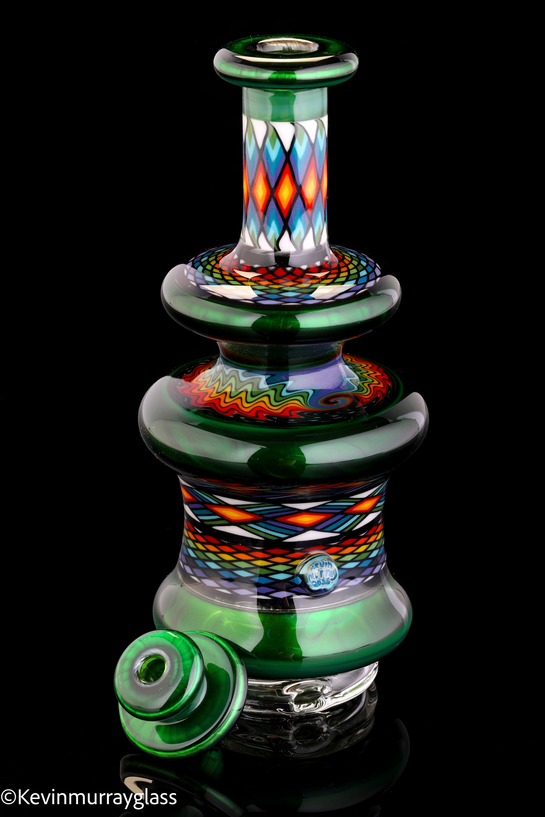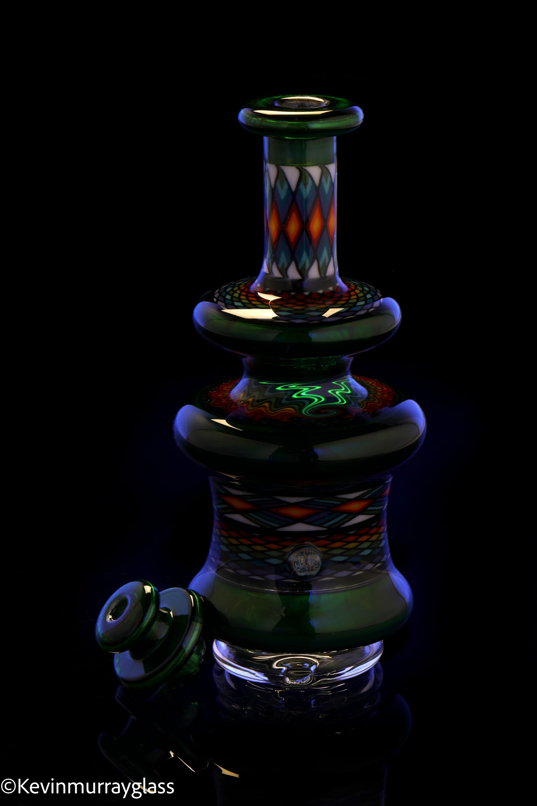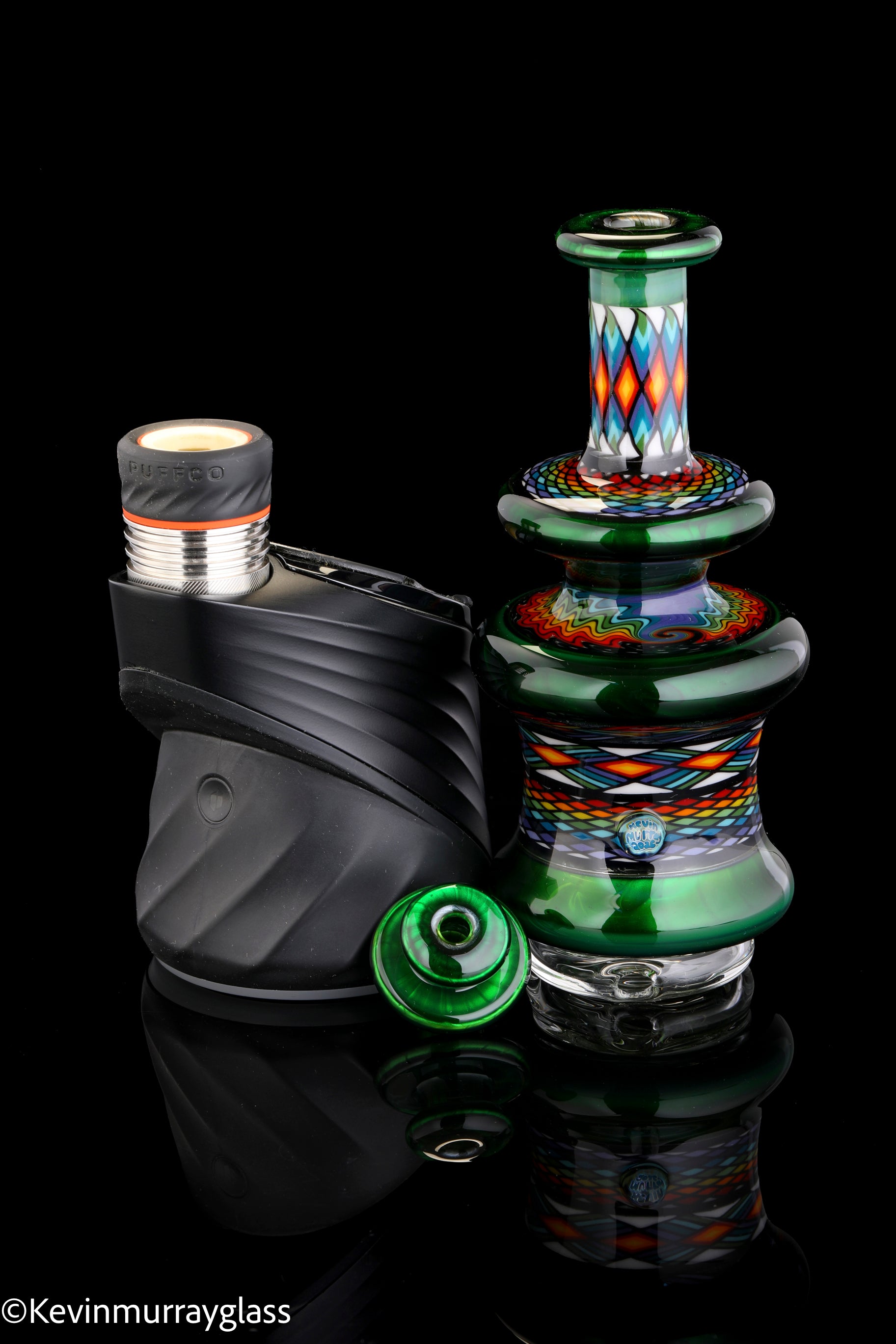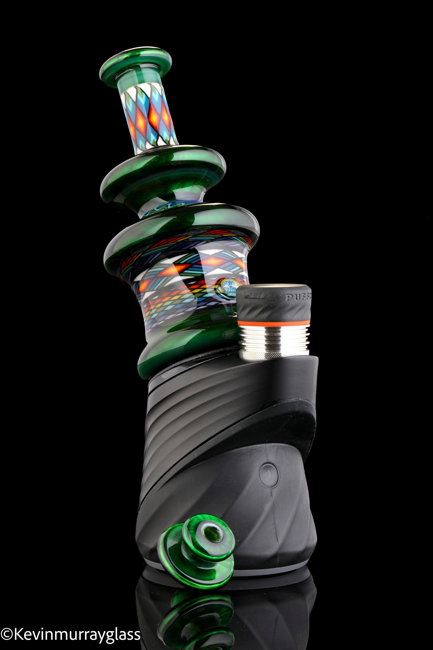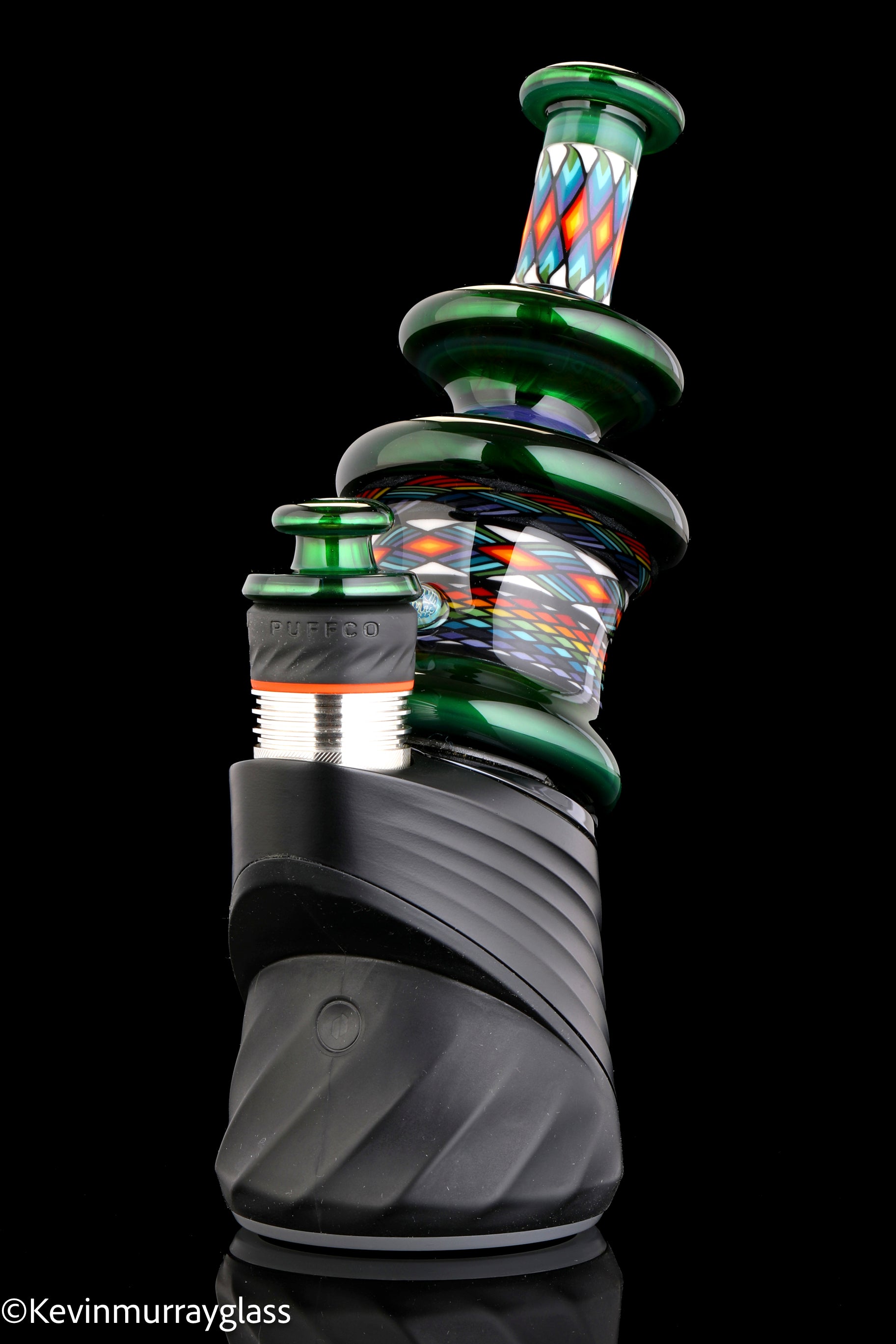 Hand made glass top for your puffco peak. Candy apple green, hand drawn fillacello sections, some UV reactive wig wag work and signed with the signature/year murrine. Includes apache 1800 hard case and matching spinner cap. DOES NOT INCLUDE PUFFCO DEVICE.
