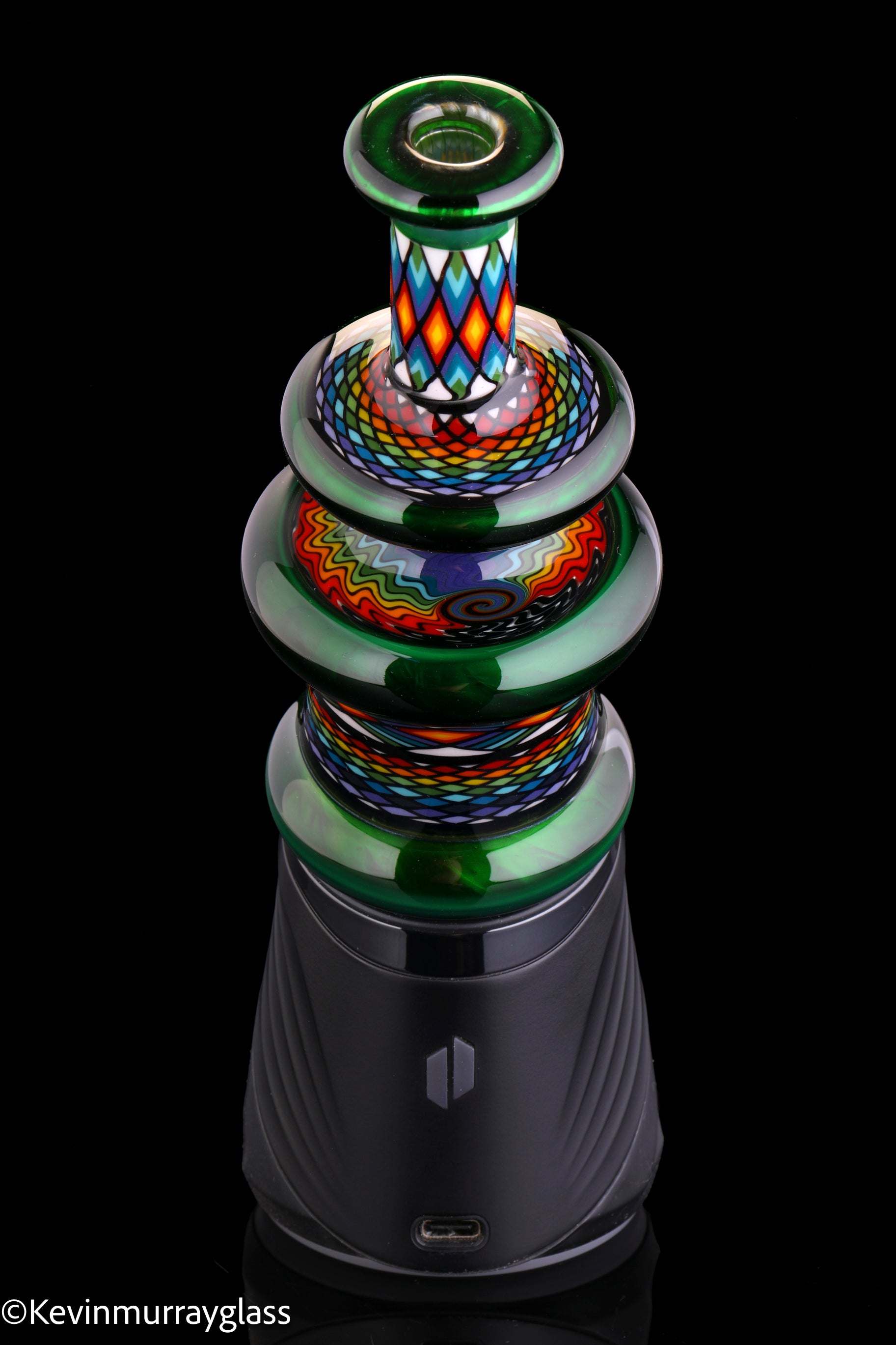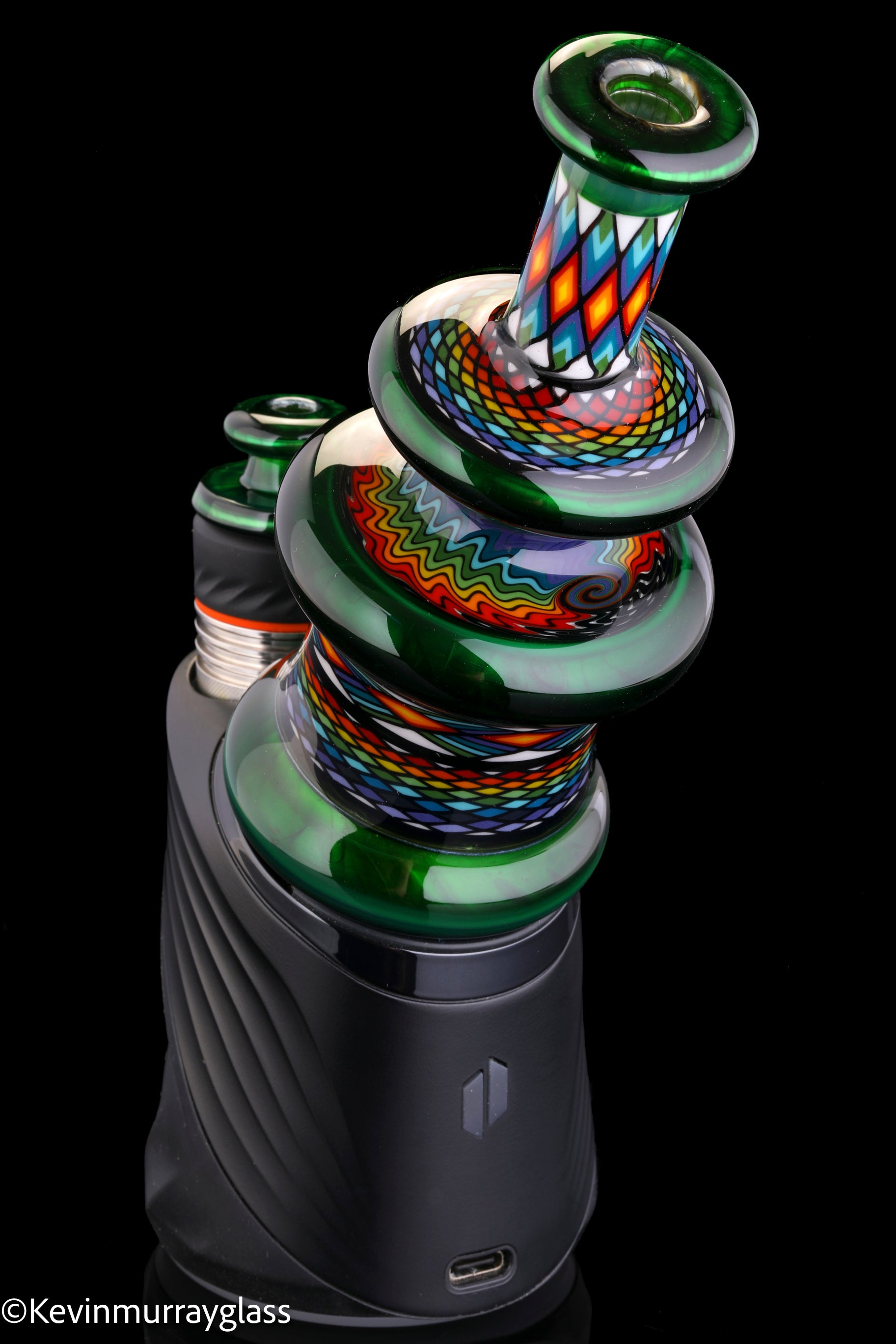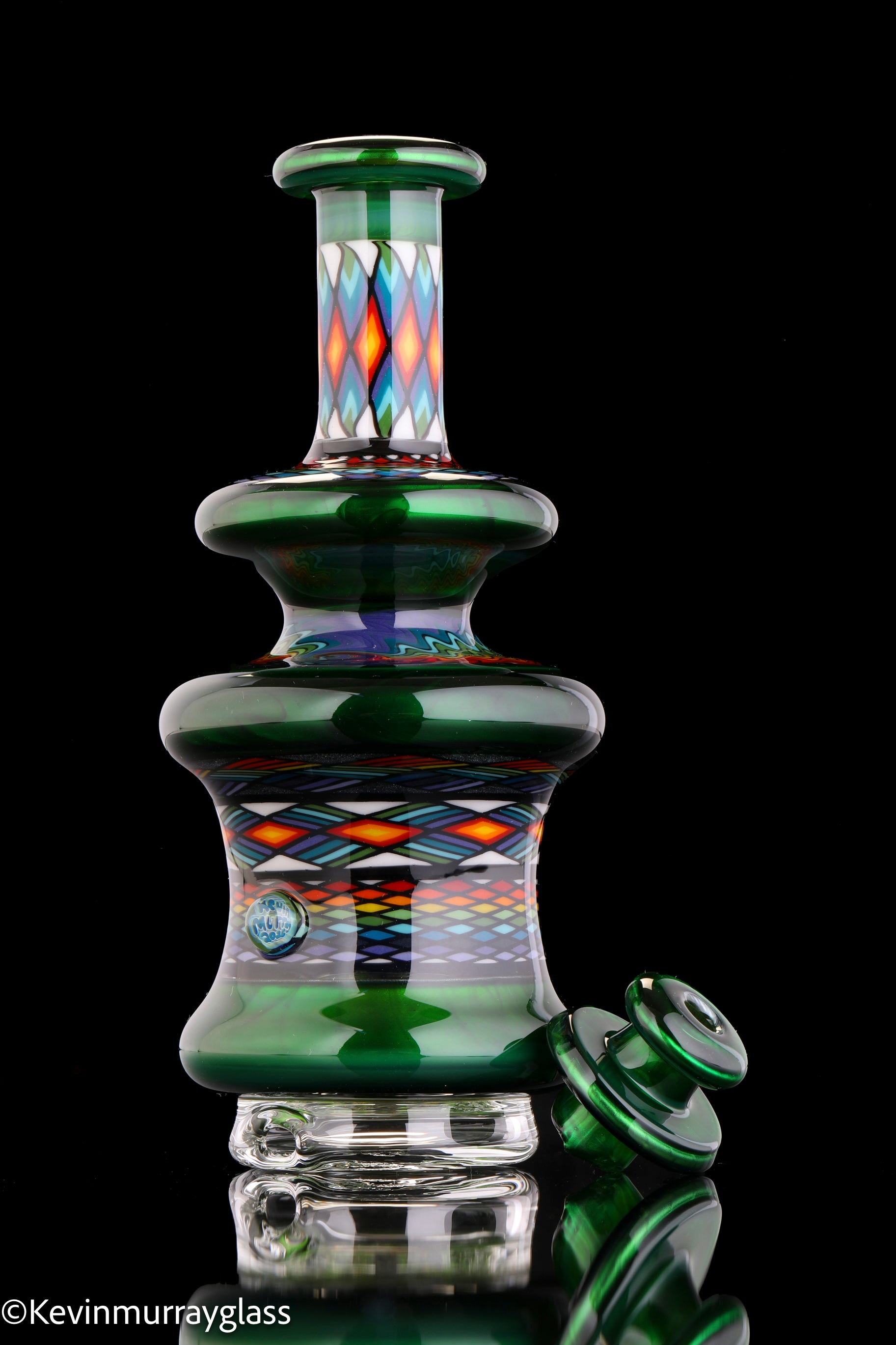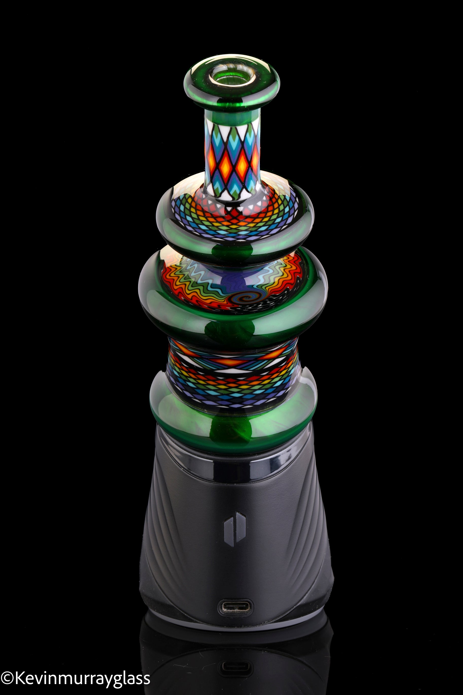 Hand made glass top for your puffco peak. Candy apple green, hand drawn fillacello sections, some UV reactive wig wag work and signed with the signature/year murrine. Includes apache 1800 hard case and matching spinner cap. DOES NOT INCLUDE PUFFCO DEVICE.