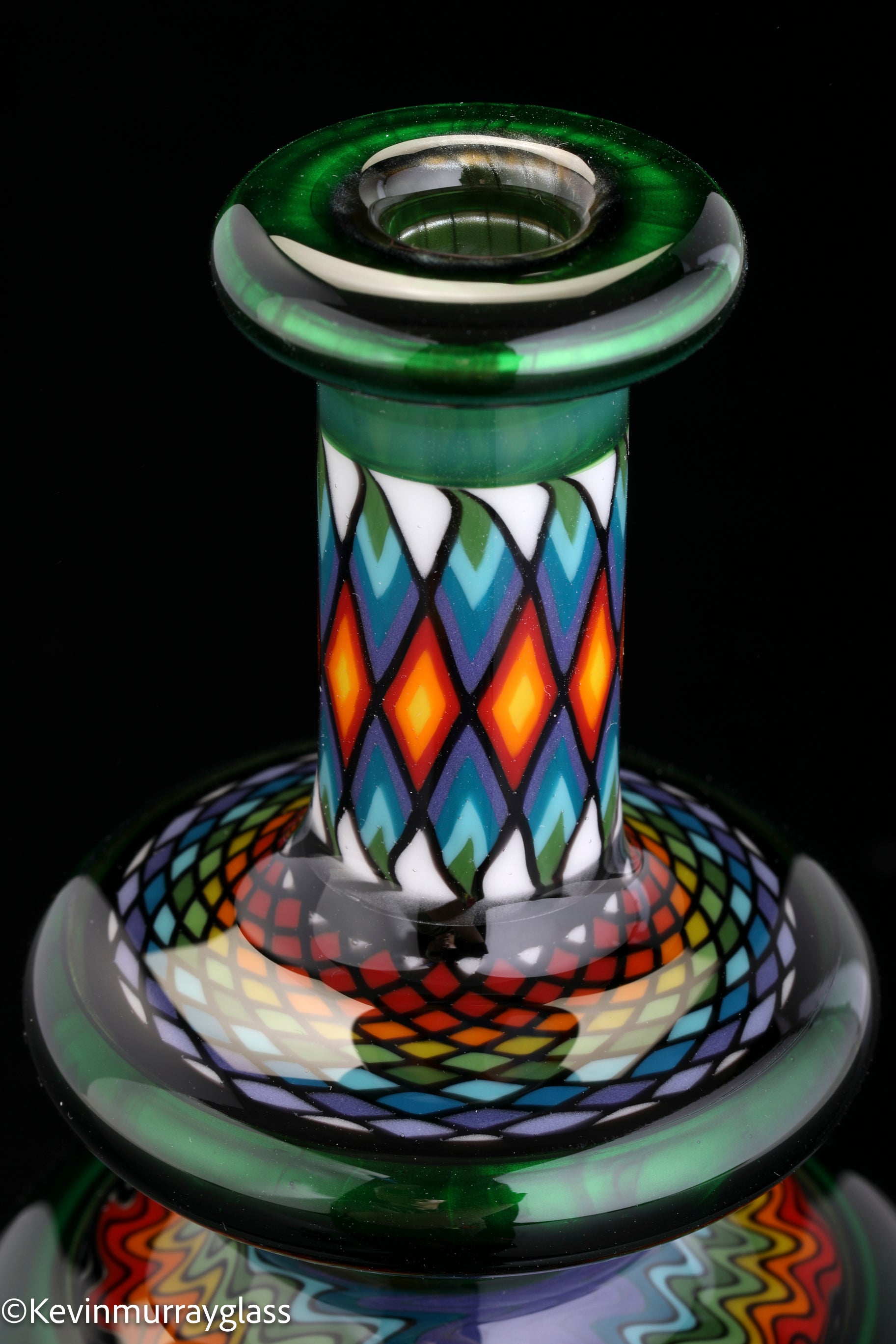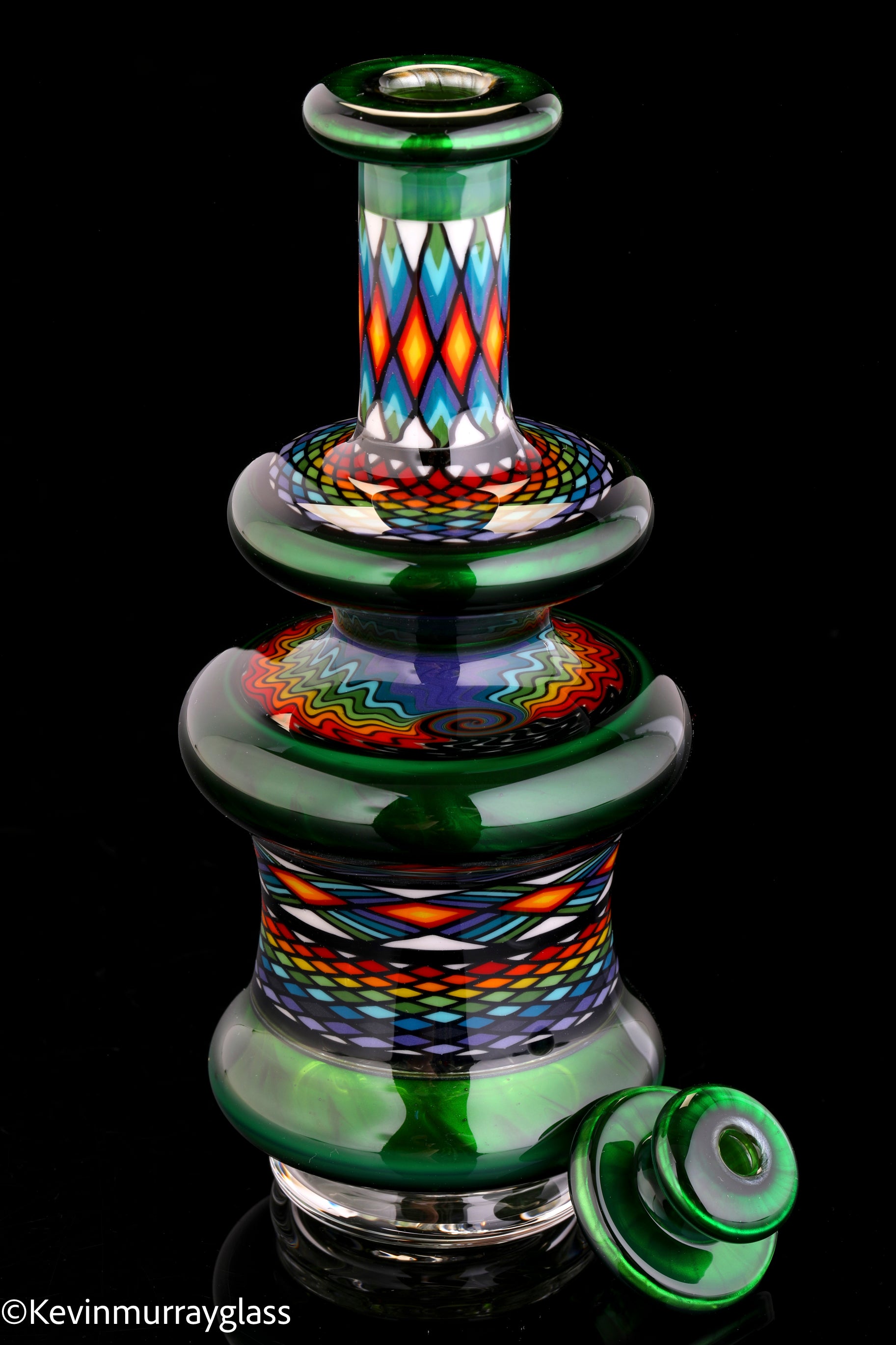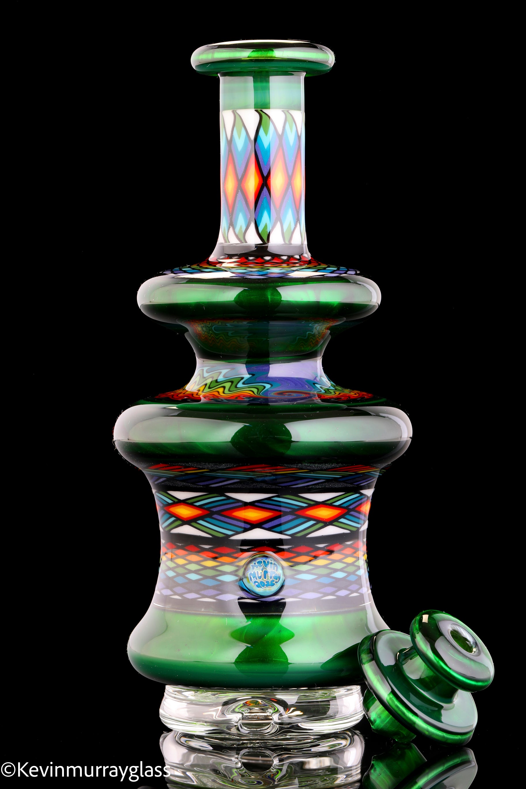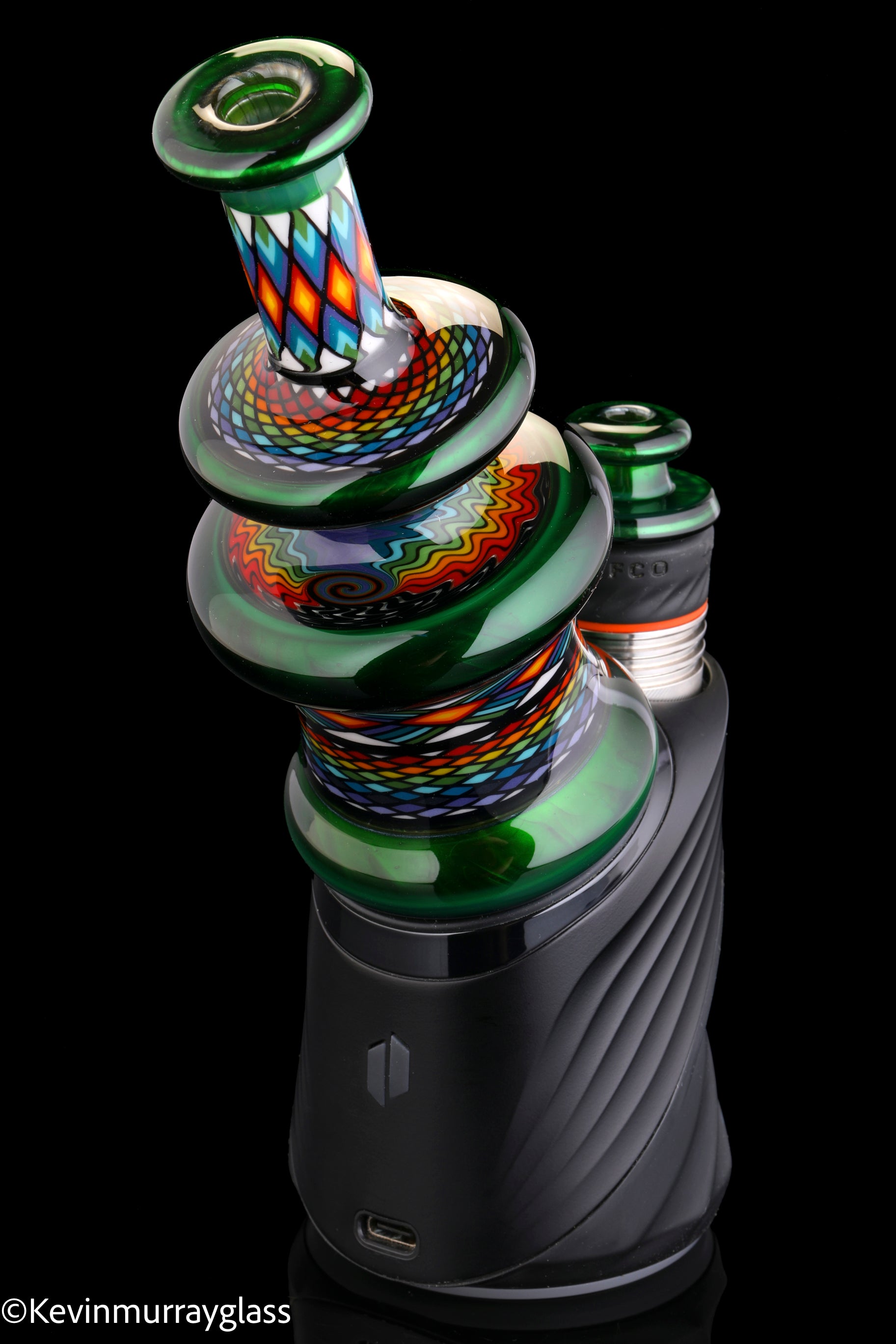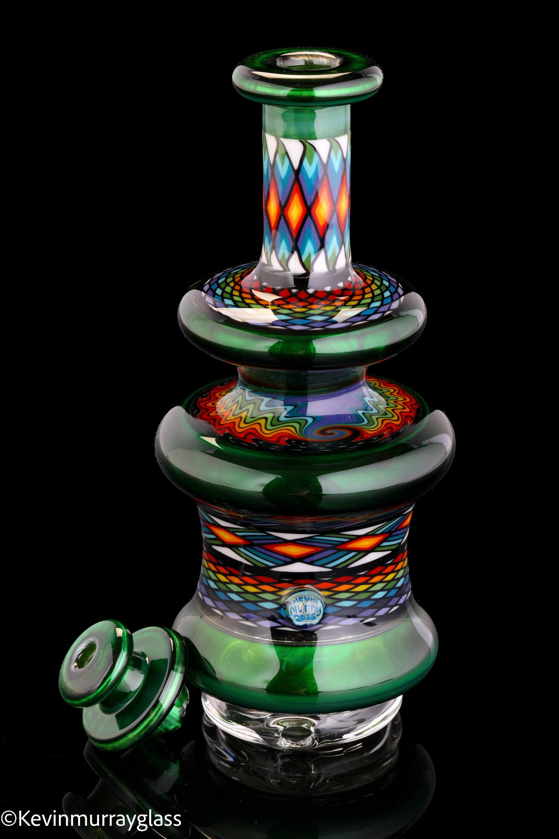 Hand made glass top for your puffco peak. Candy apple green, hand drawn fillacello sections, some UV reactive wig wag work and signed with the signature/year murrine. Includes apache 1800 hard case and matching spinner cap. DOES NOT INCLUDE PUFFCO DEVICE.