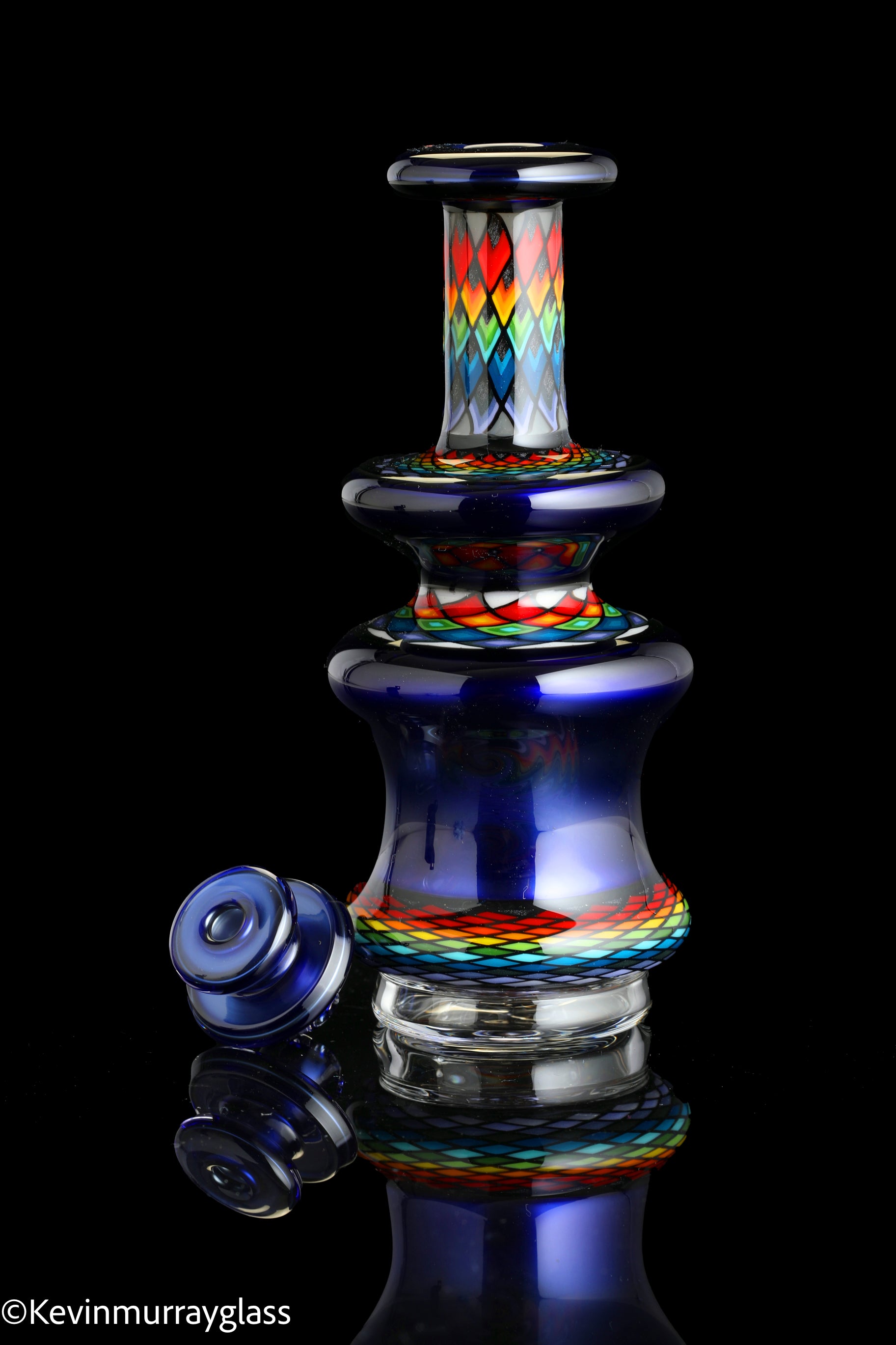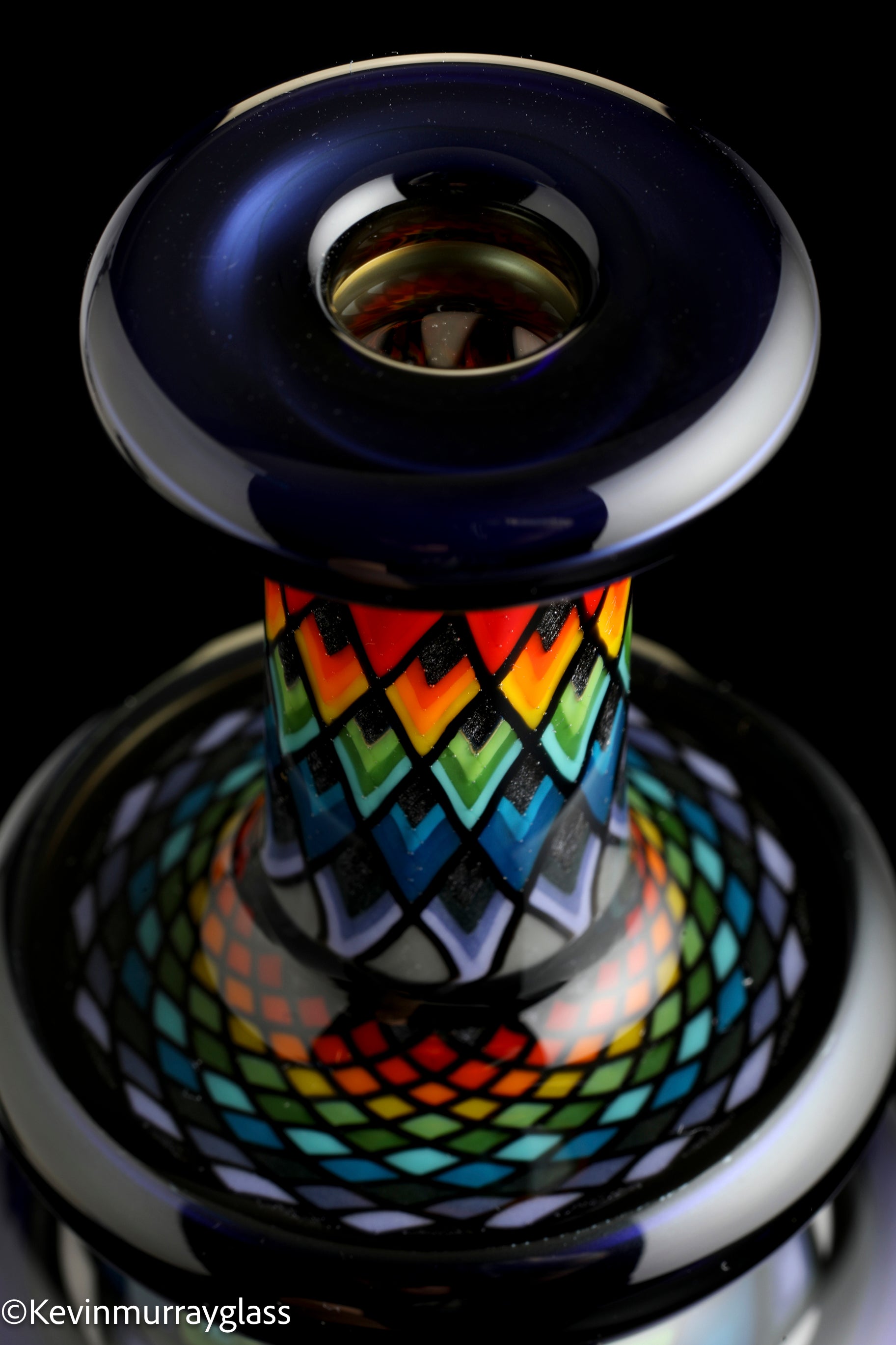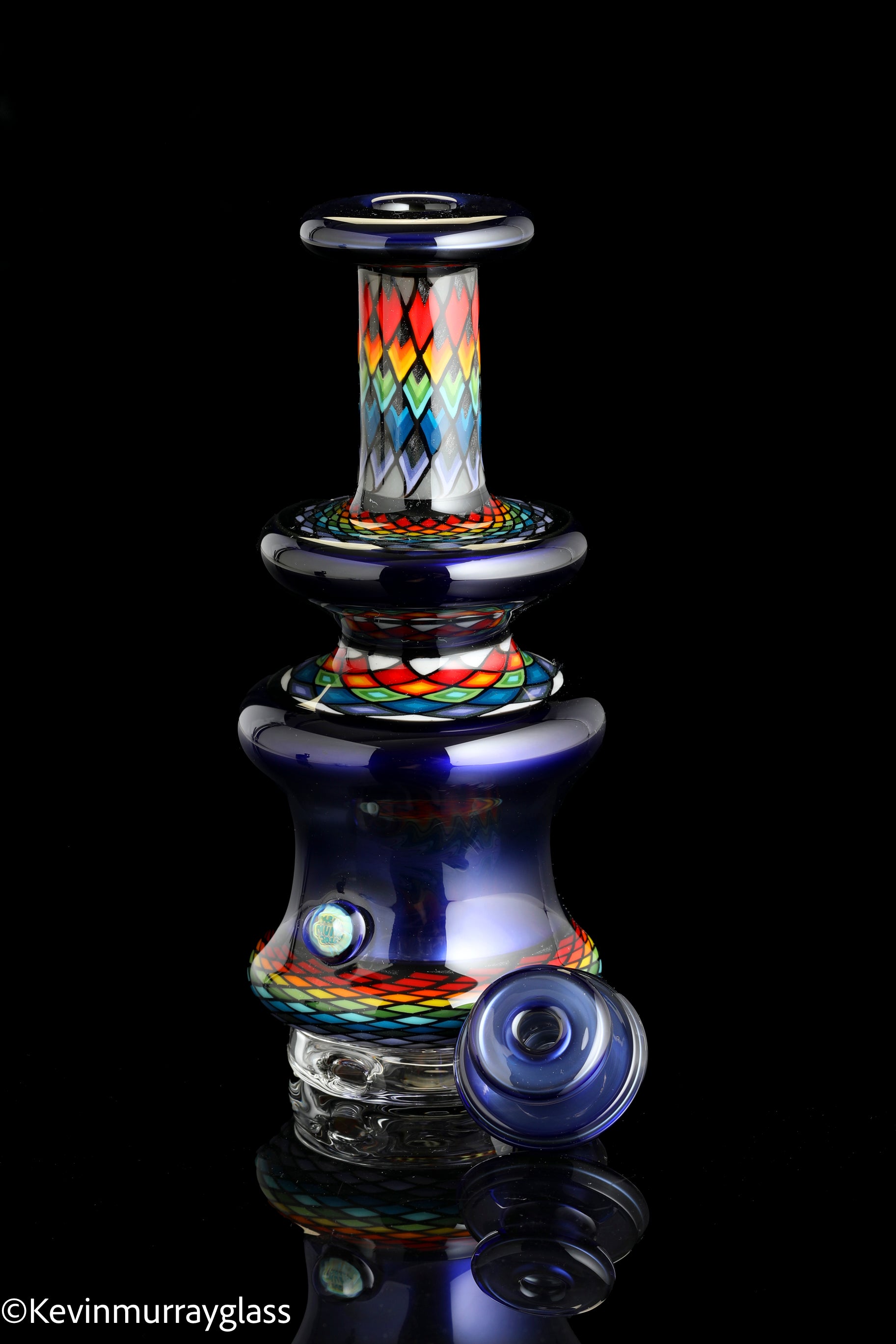 Hand made glass top for your puffco peak with four hand drawn fillacello sections and "candy cobalt blue", 3 hole perk and a clear bottom to let the puffco light show through. Signed with the signature/year murrine, includes apache 1800 hard case.