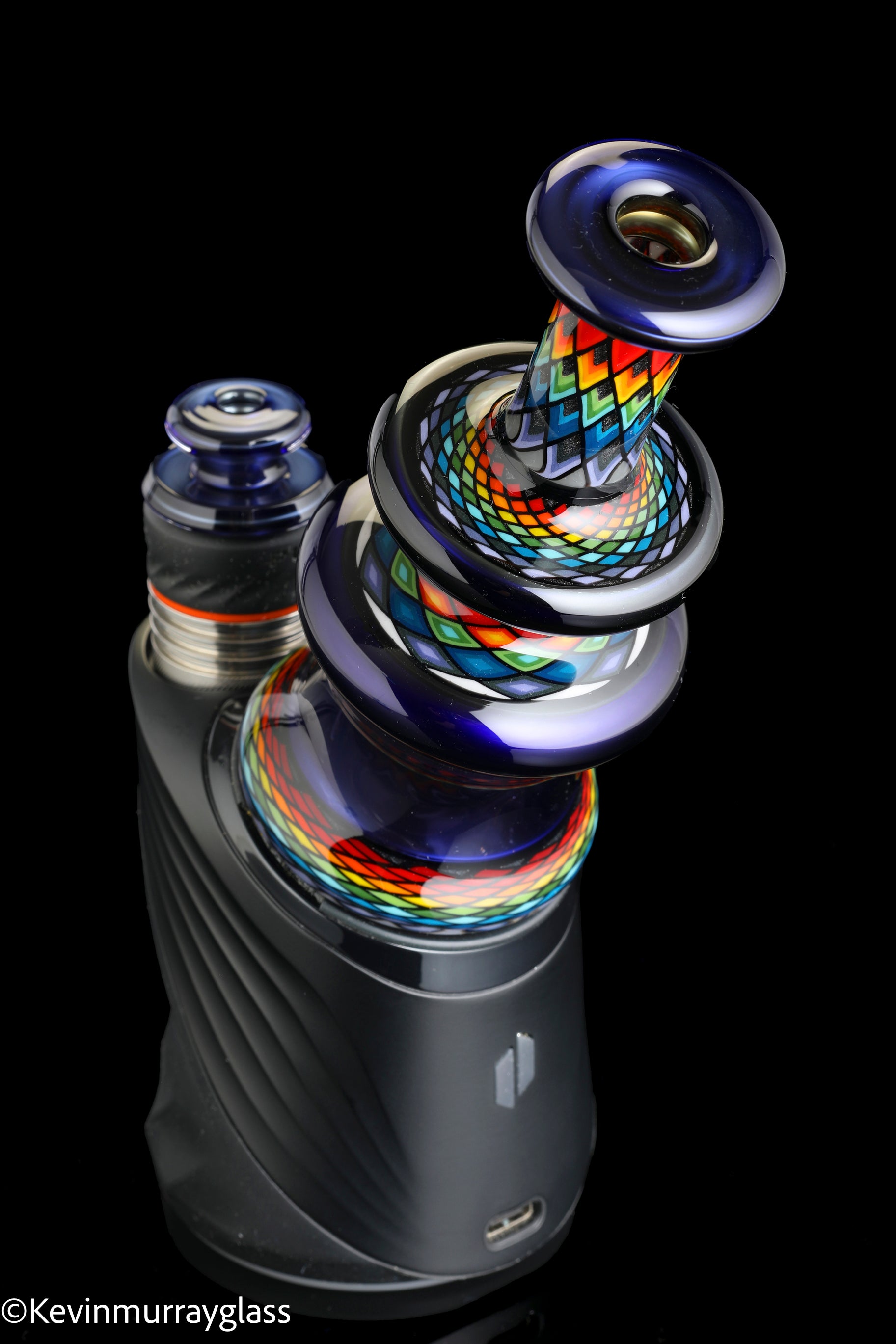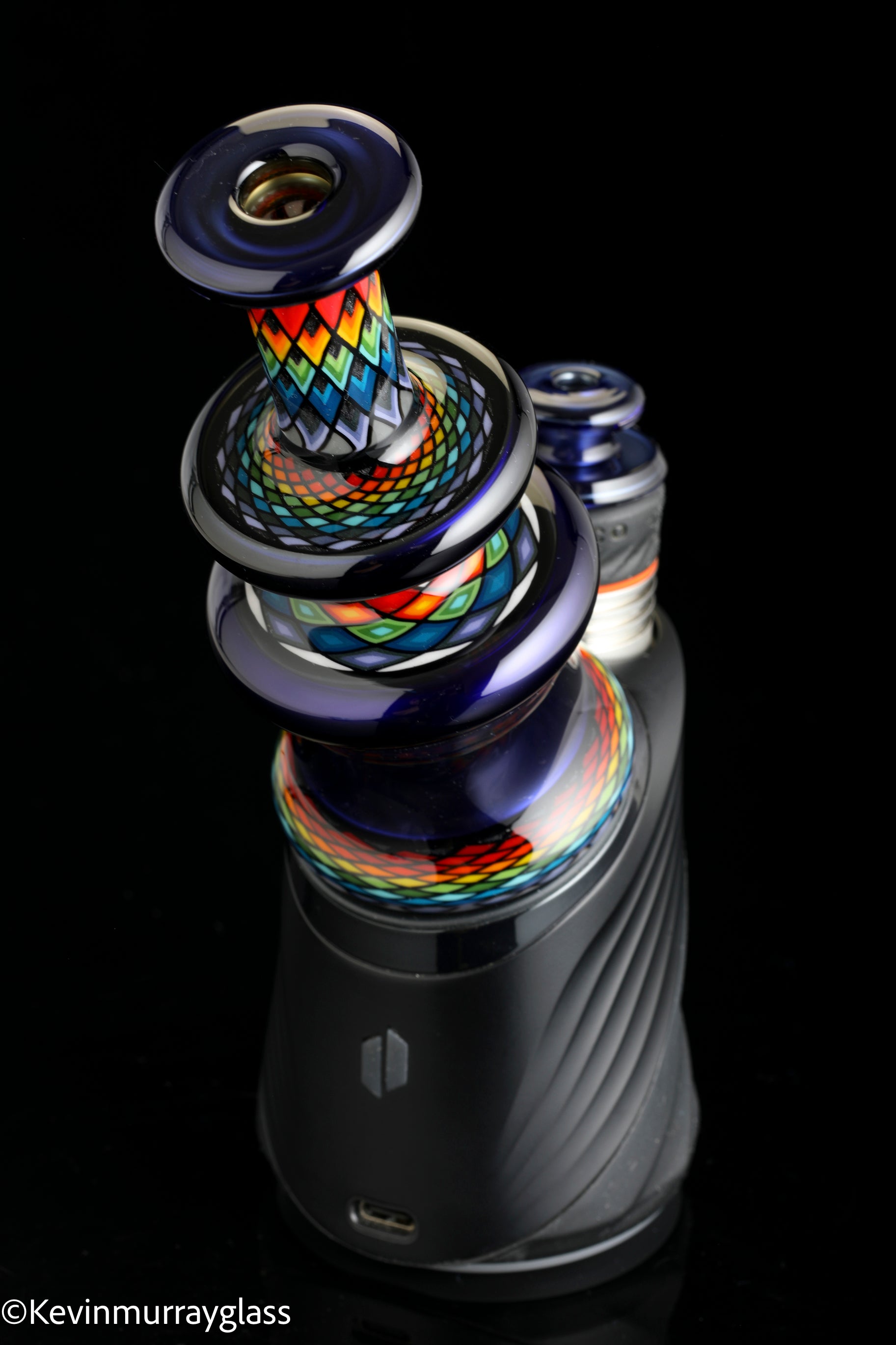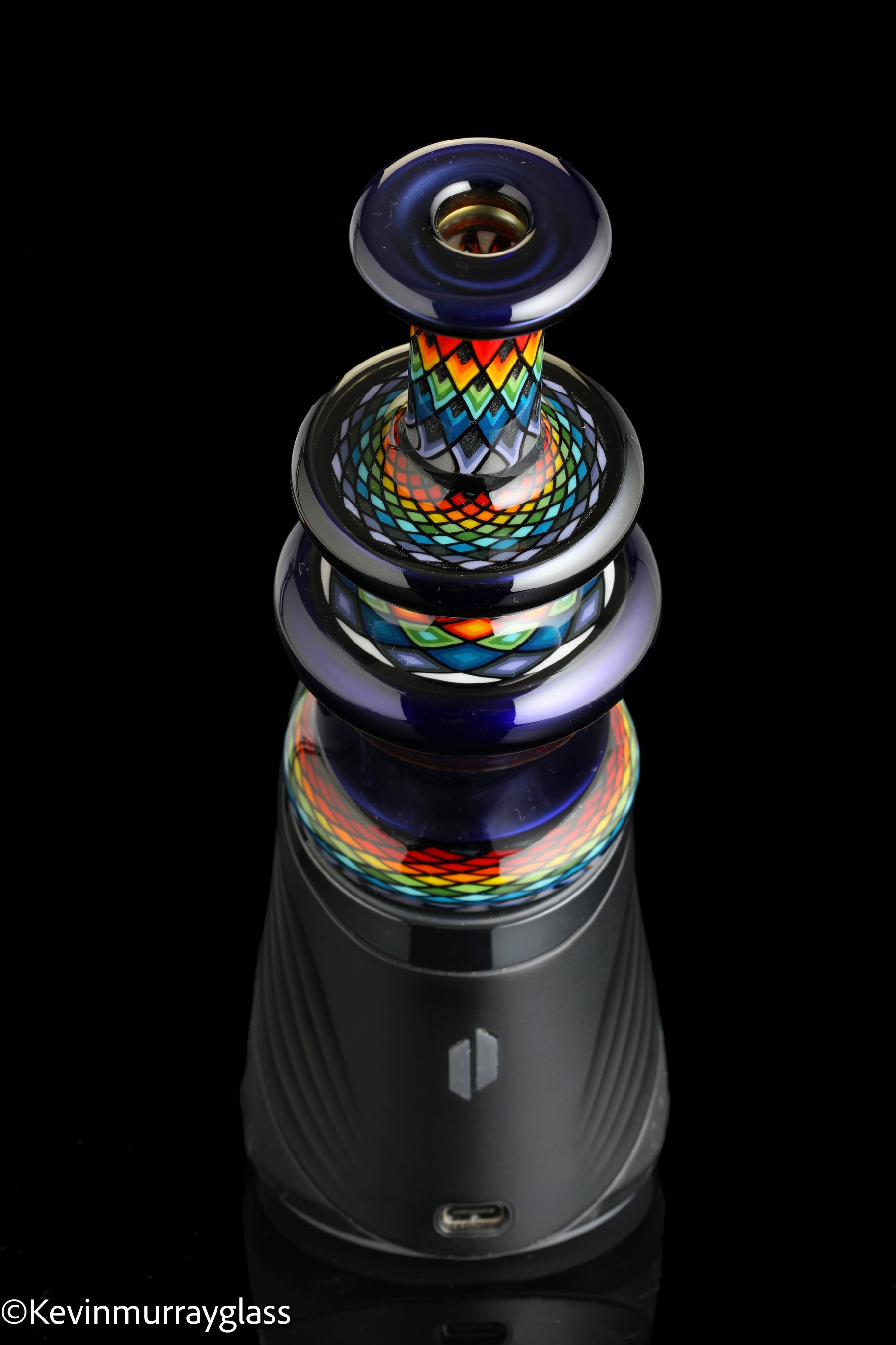 Hand made glass top for your puffco peak with four hand drawn fillacello sections and "candy cobalt blue", 3 hole perk and a clear bottom to let the puffco light show through. Signed with the signature/year murrine, includes apache 1800 hard case.