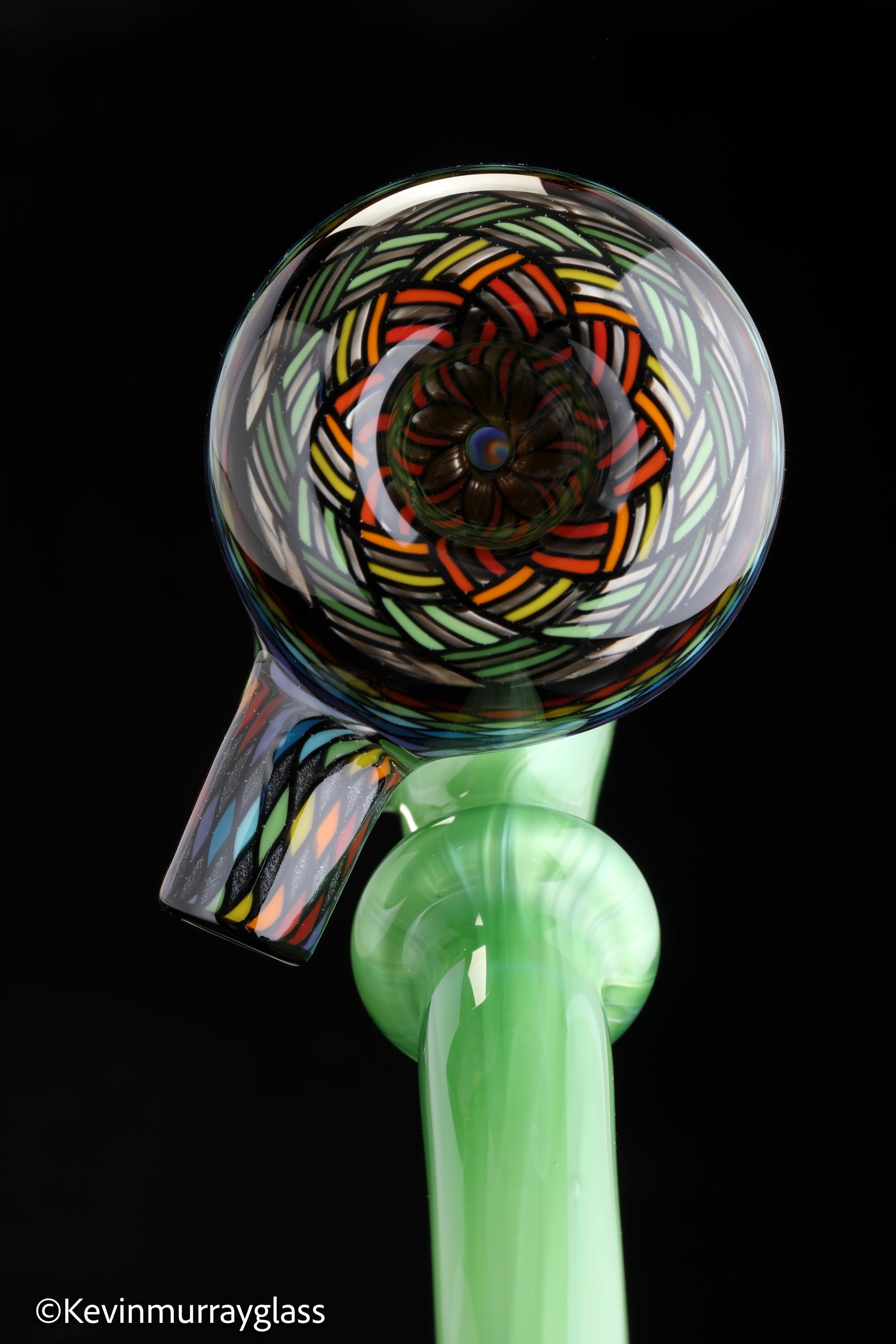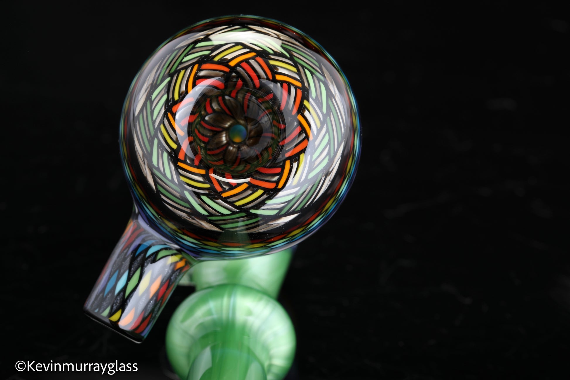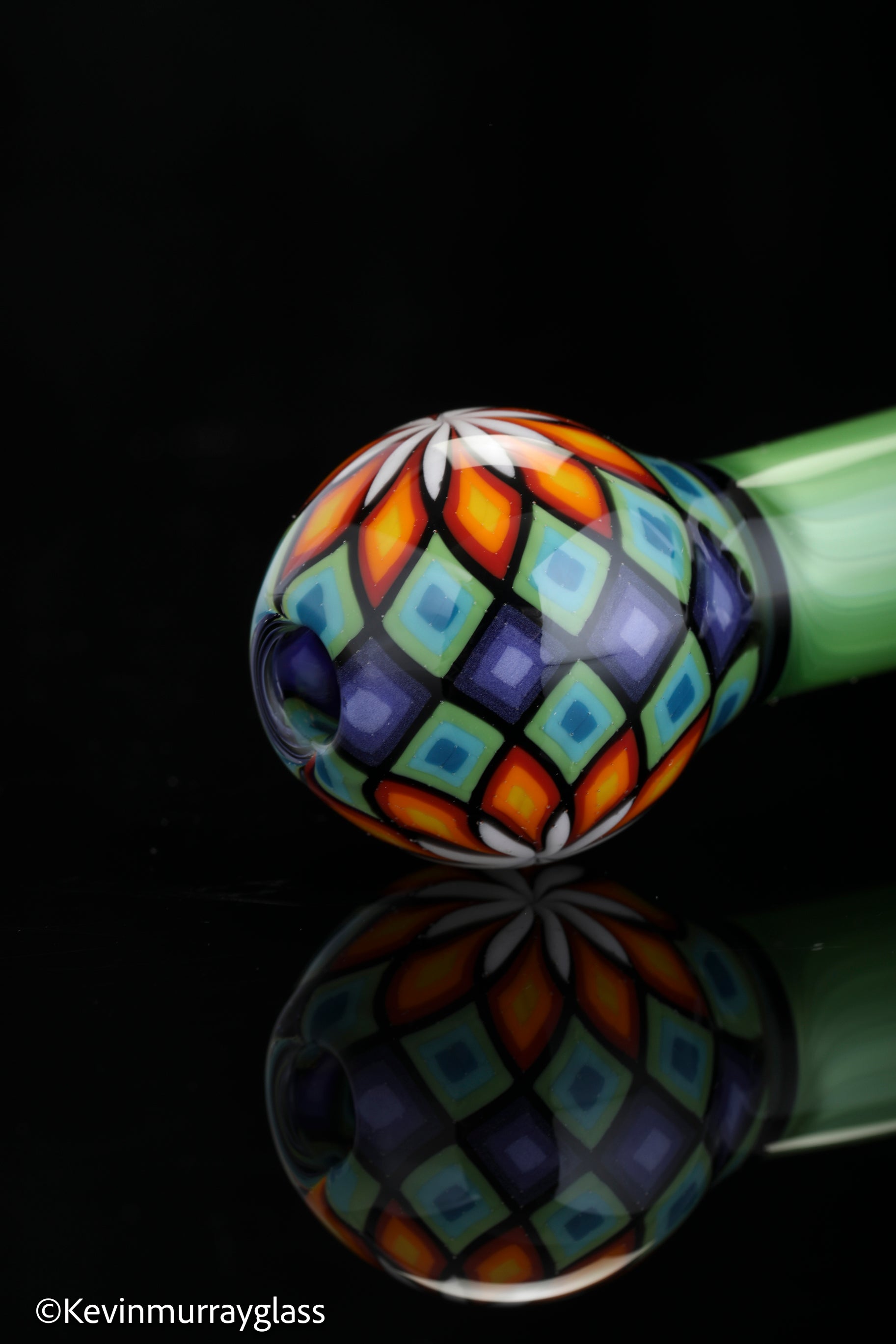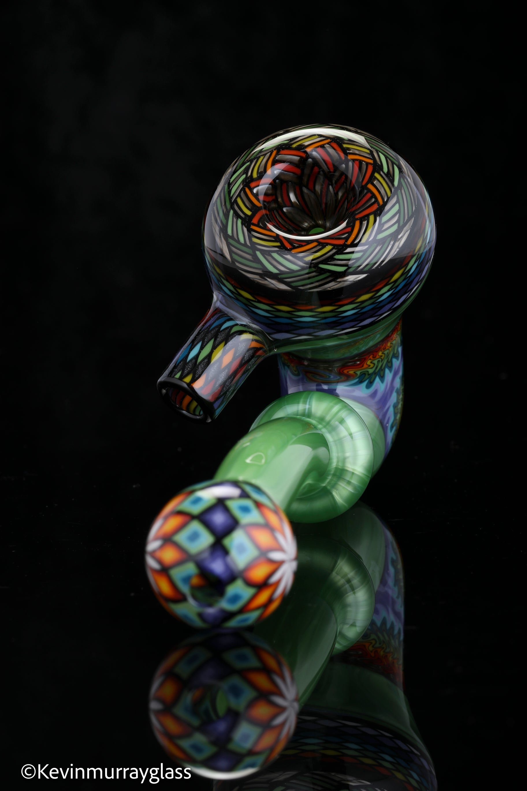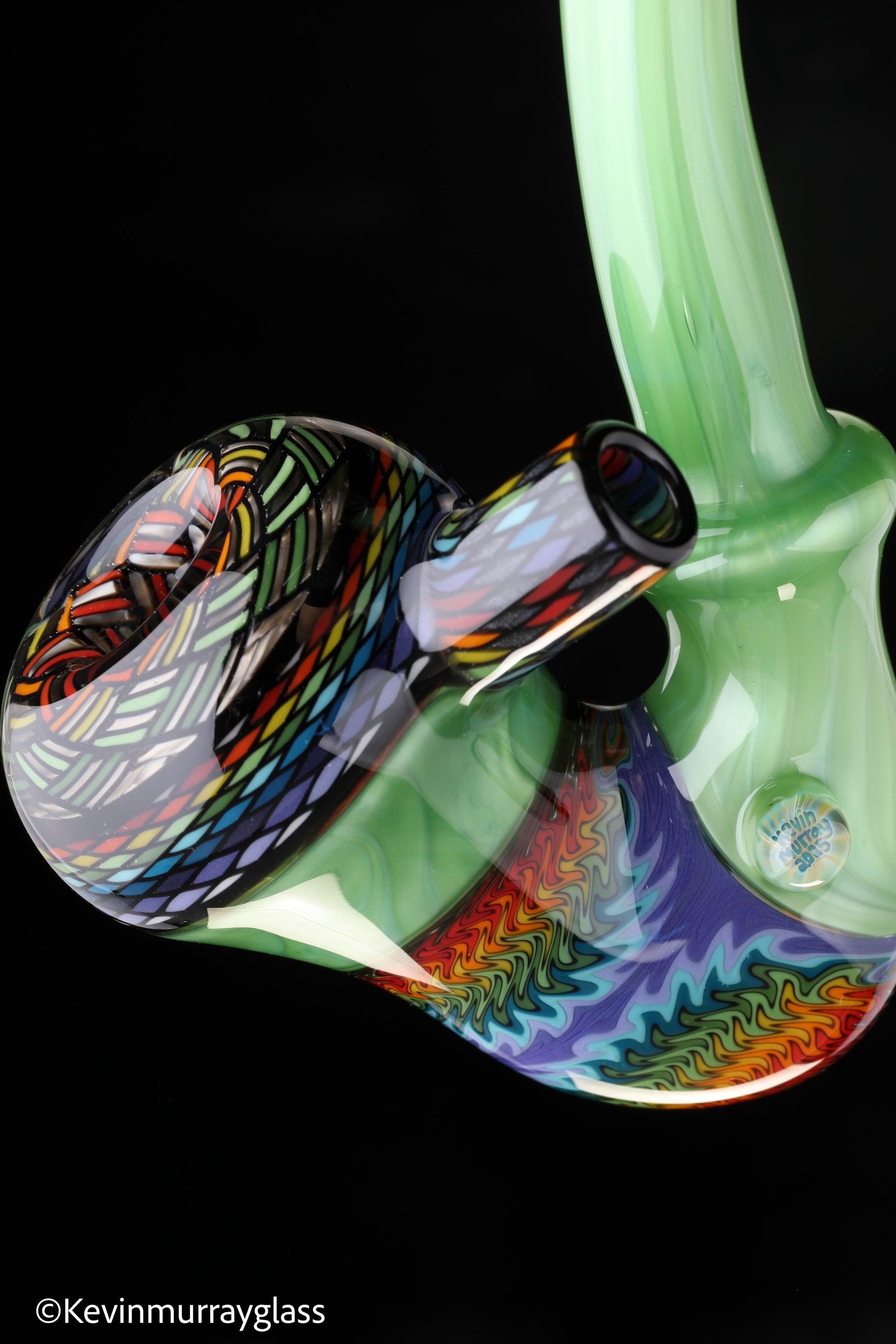 Classic style sherlock in plantphibion over chromium greens with hand drawn fillacellos and UV reactive wig wags. Siged with the signature/year murrine.