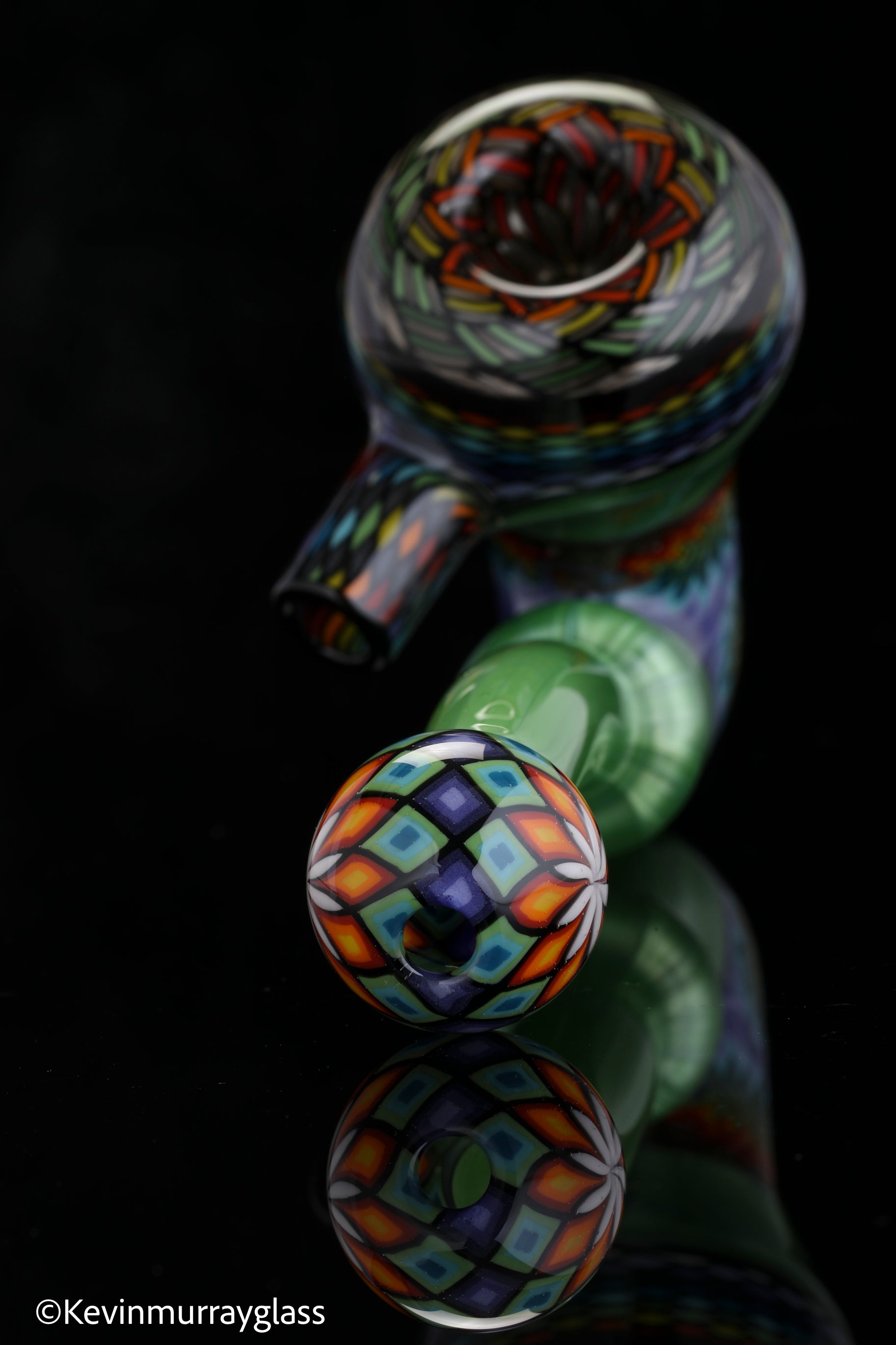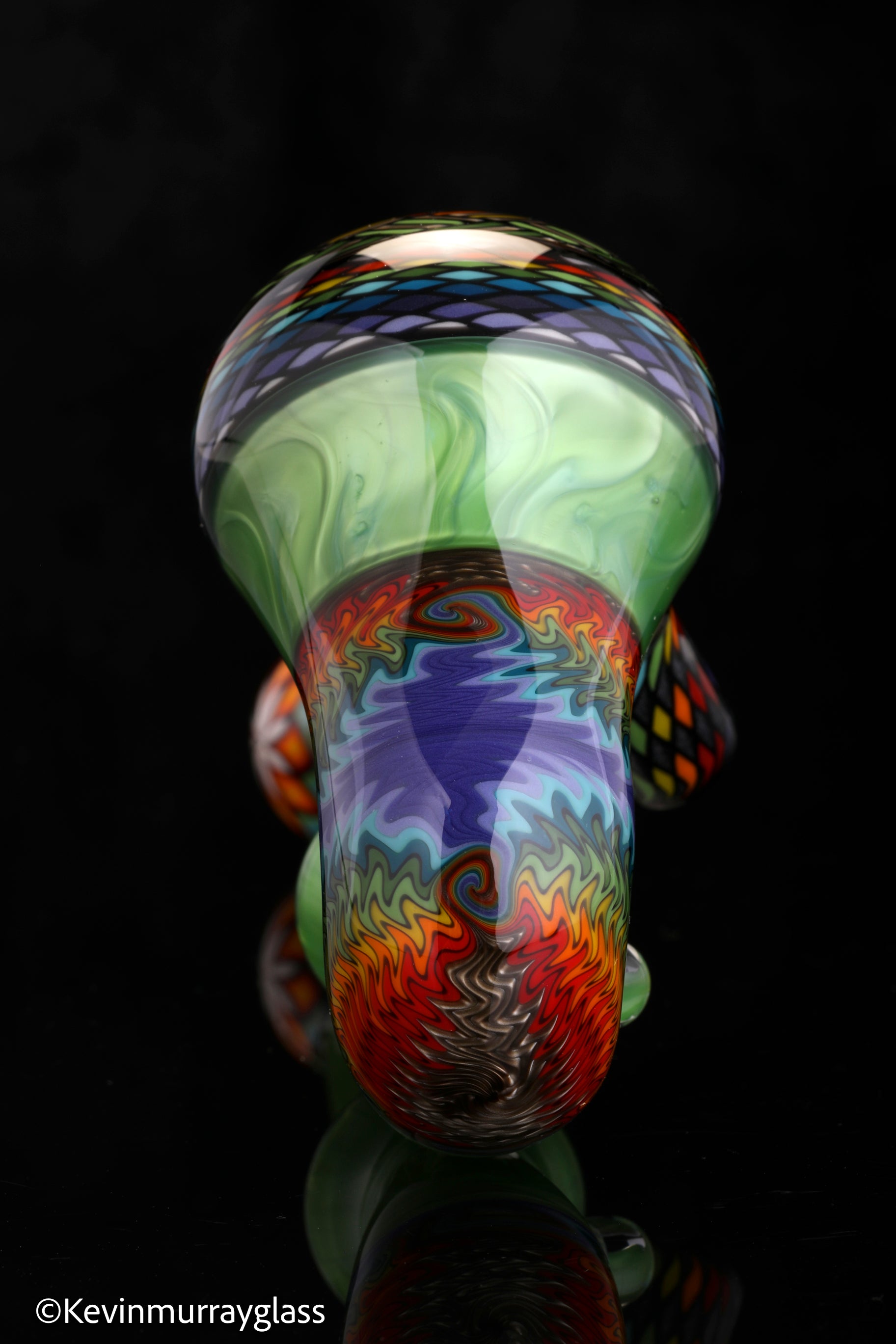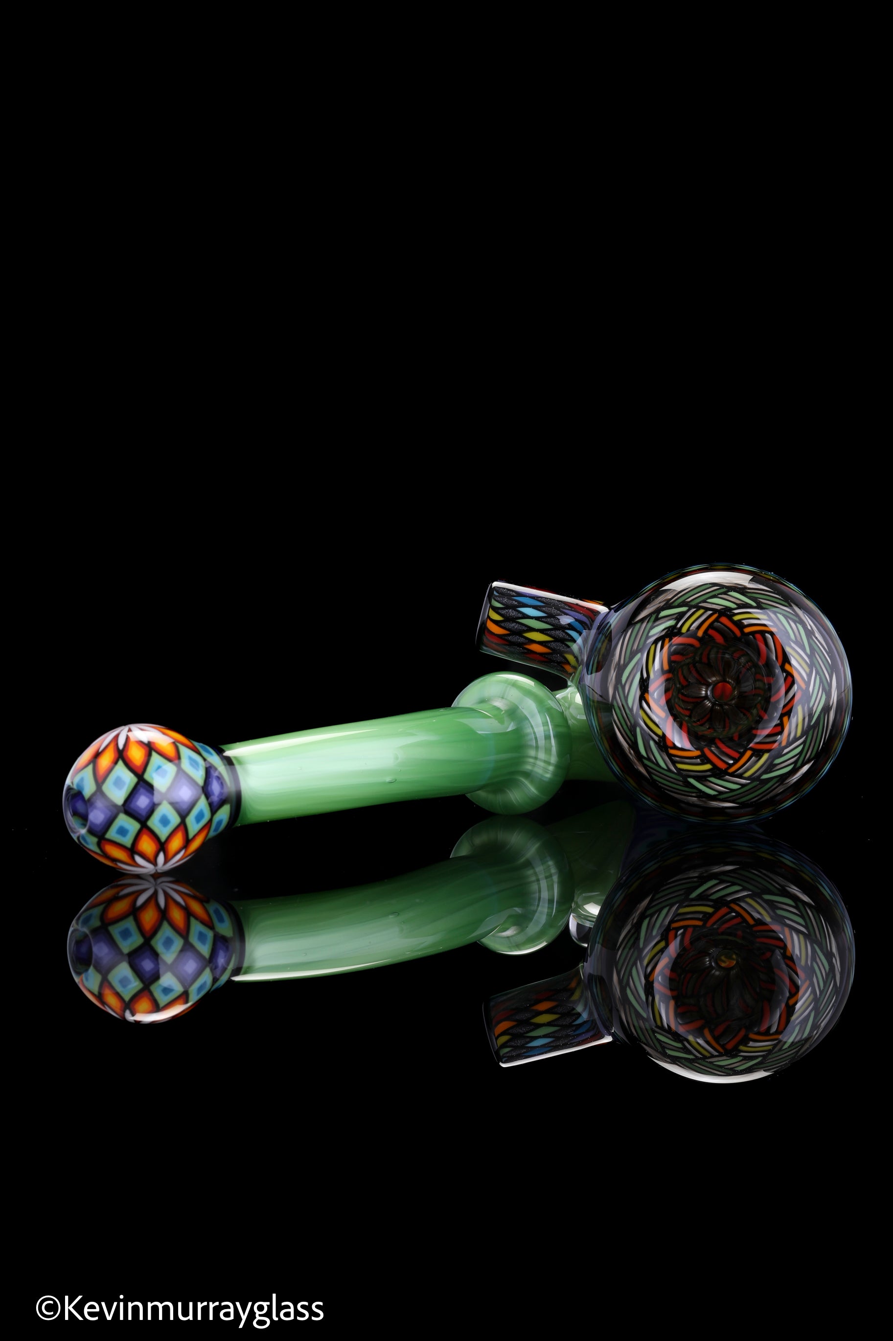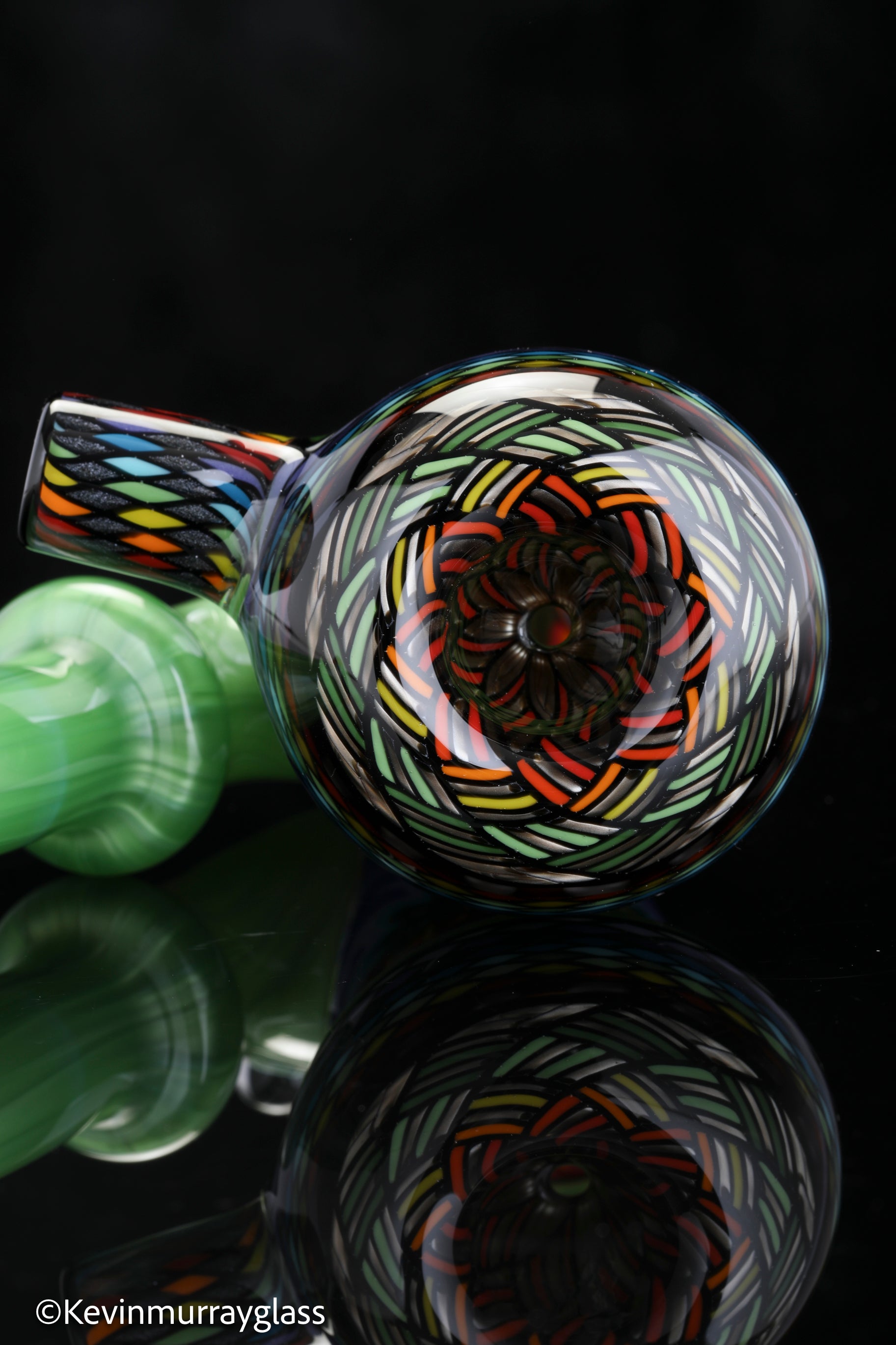 Classic style sherlock in plantphibion over chromium greens with hand drawn fillacellos and UV reactive wig wags. Siged with the signature/year murrine.